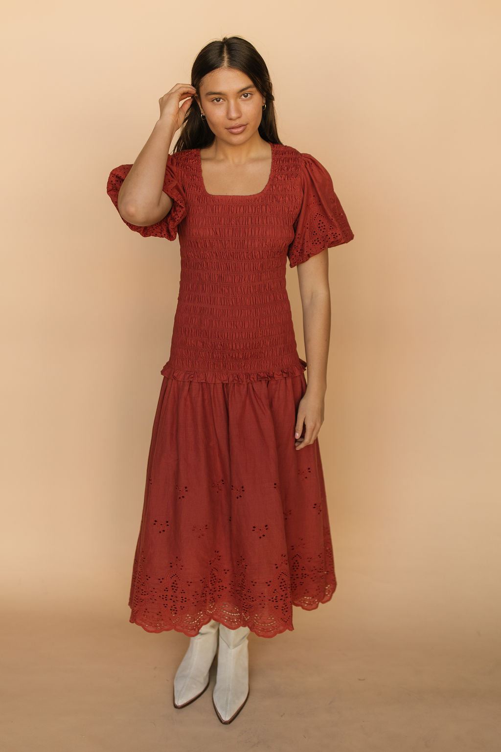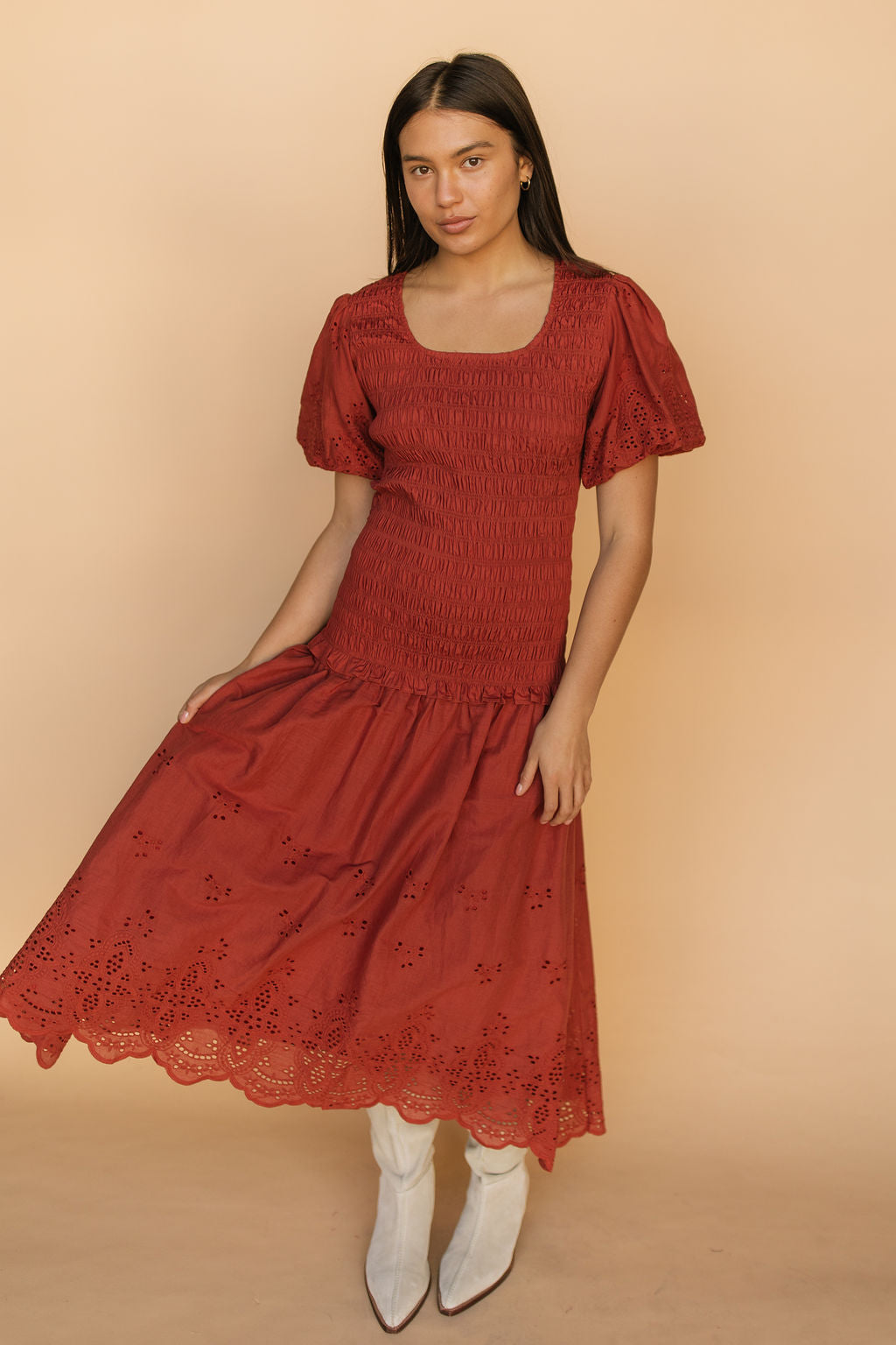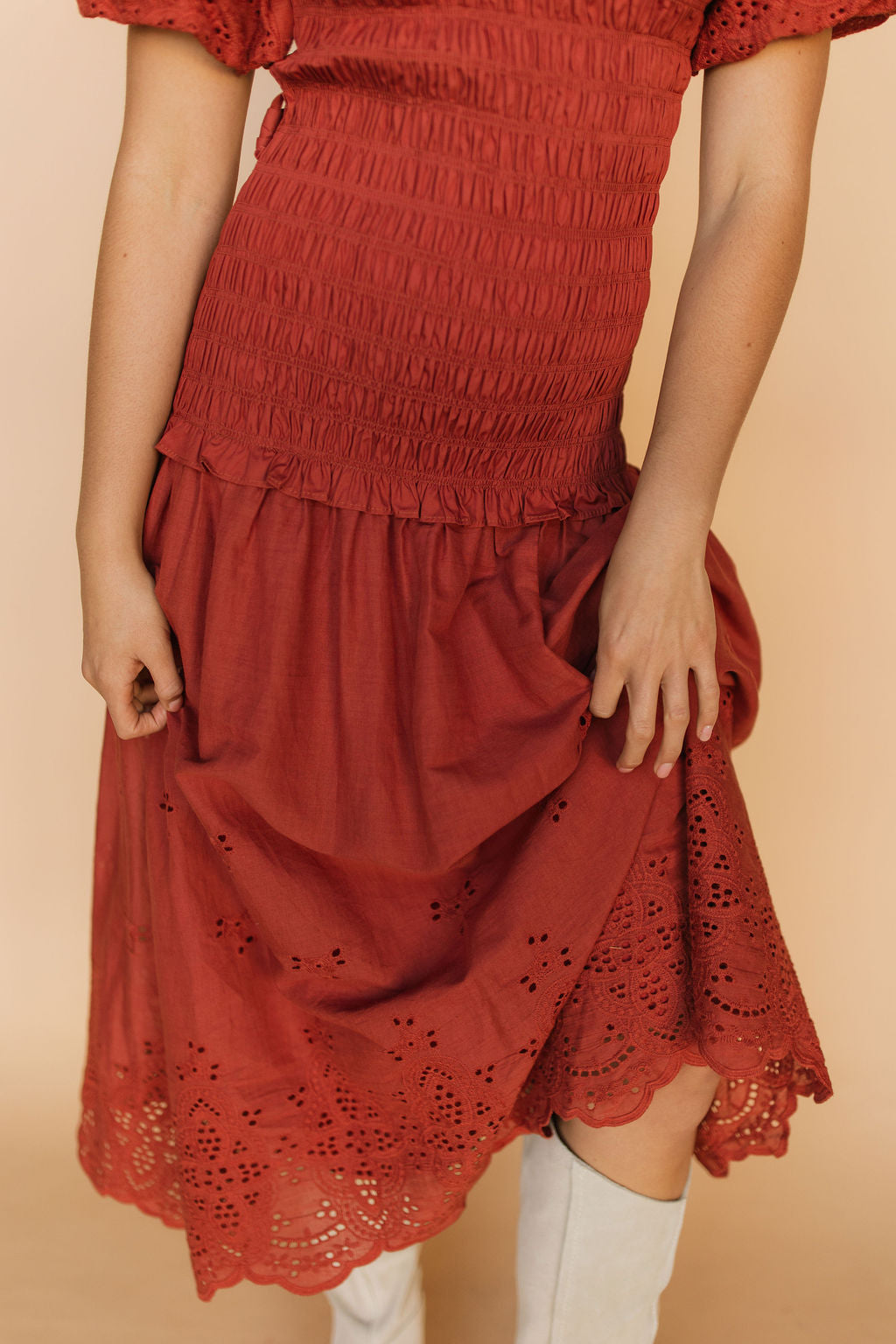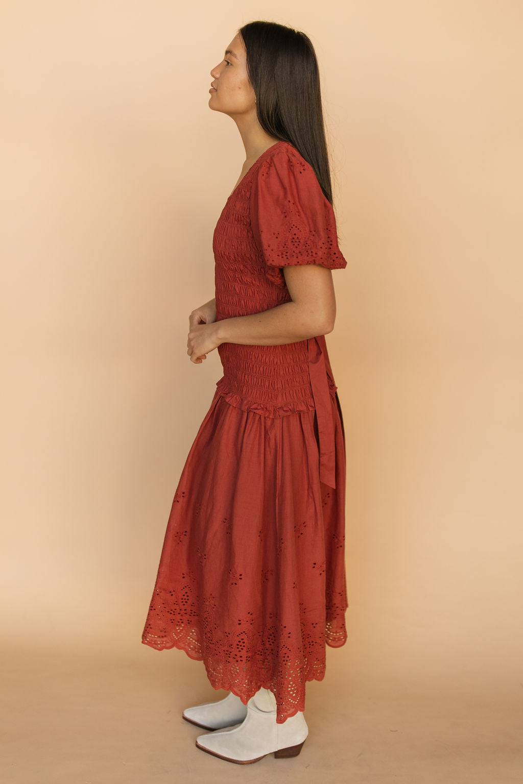 Veronica Eyelet Lace Maxi in Red