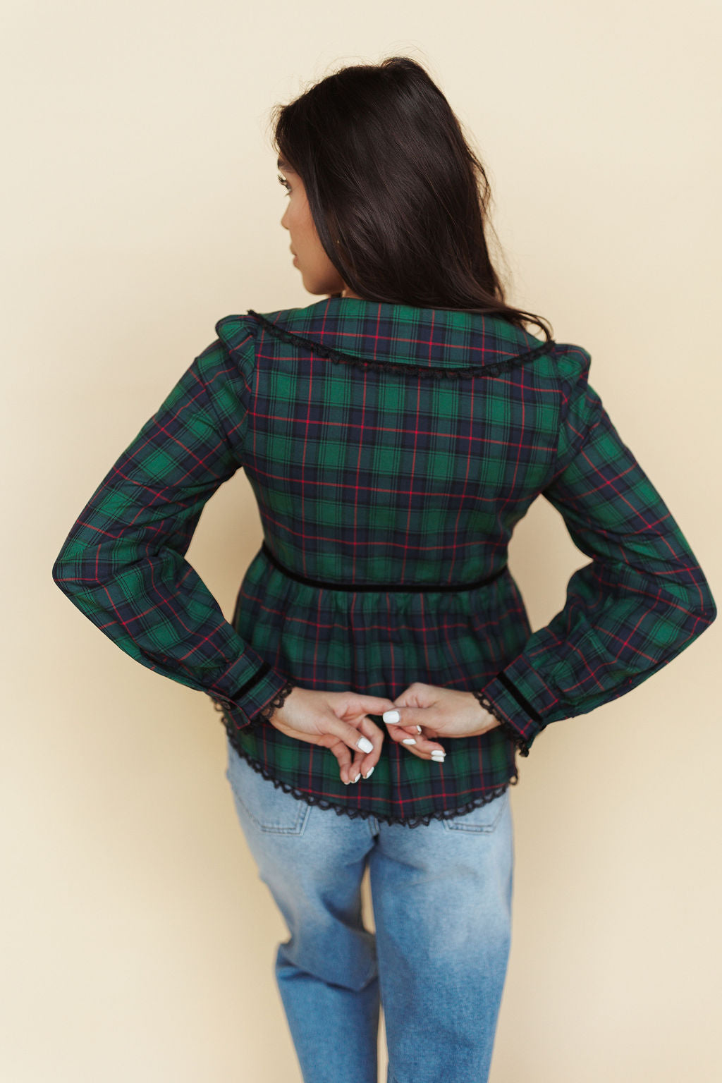 FINAL SALE - Noelle Plaid Blouse in Green