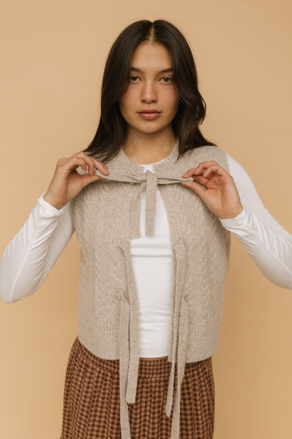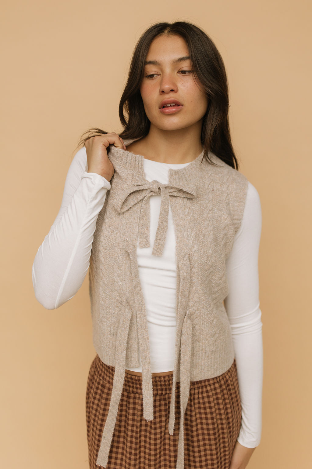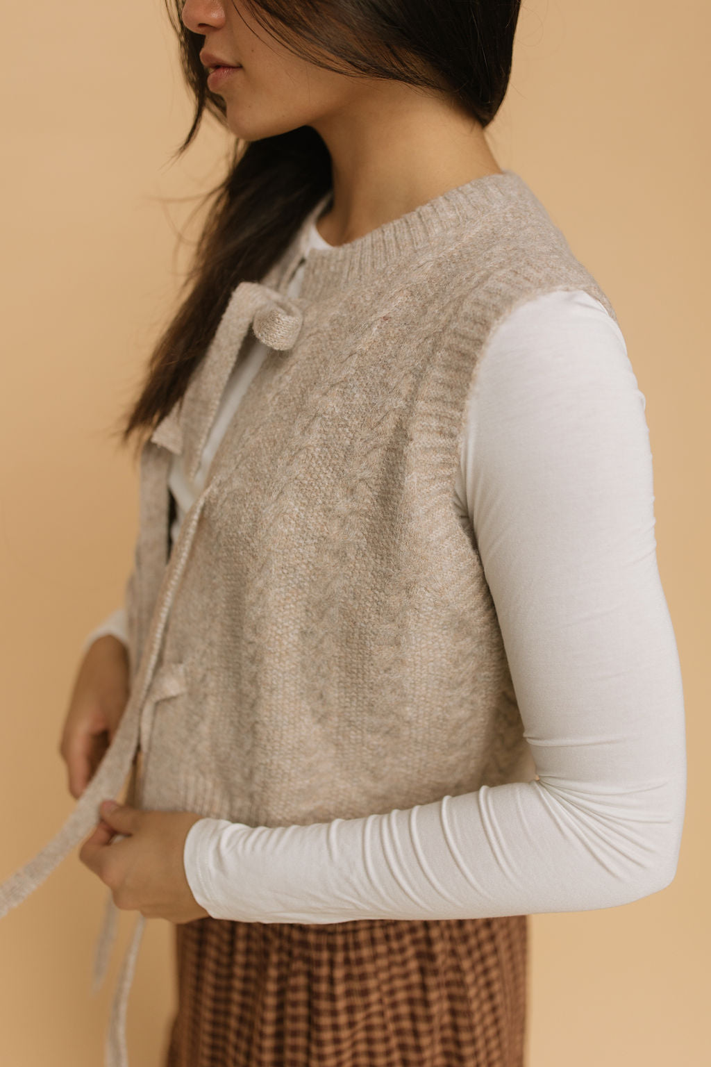 Fern Cable Knit Vest in Oatmeal