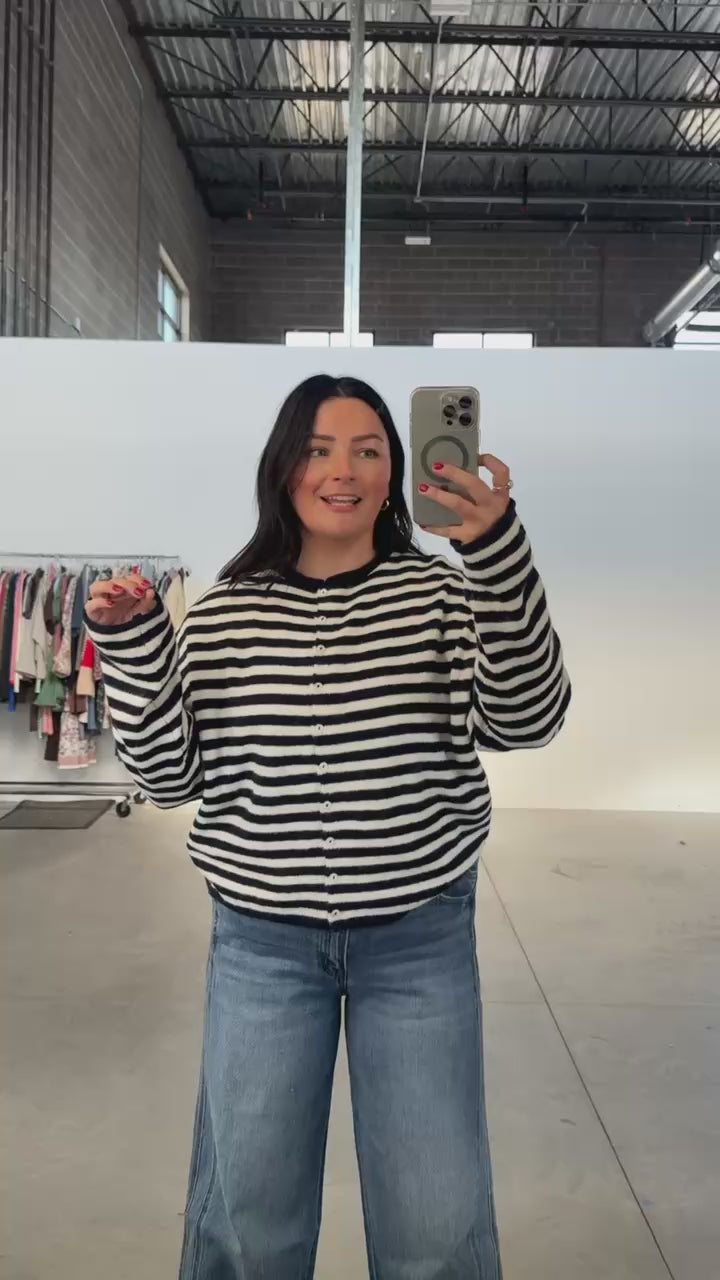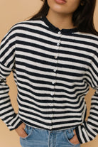 Piper Cardigan in Dark Navy Pinstripe