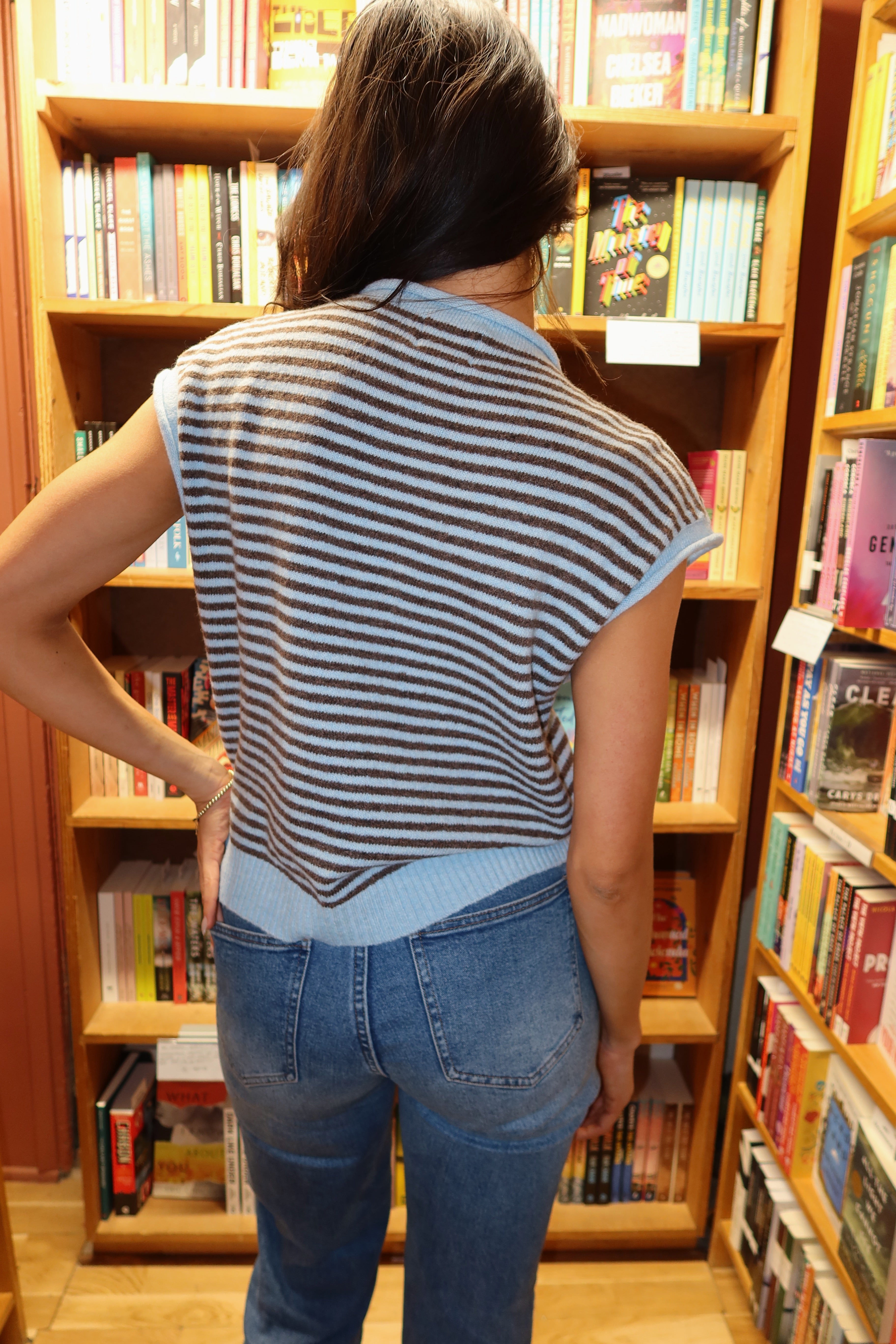 Piper Short Sleeve Cardigan in Blue/Brown Stripe