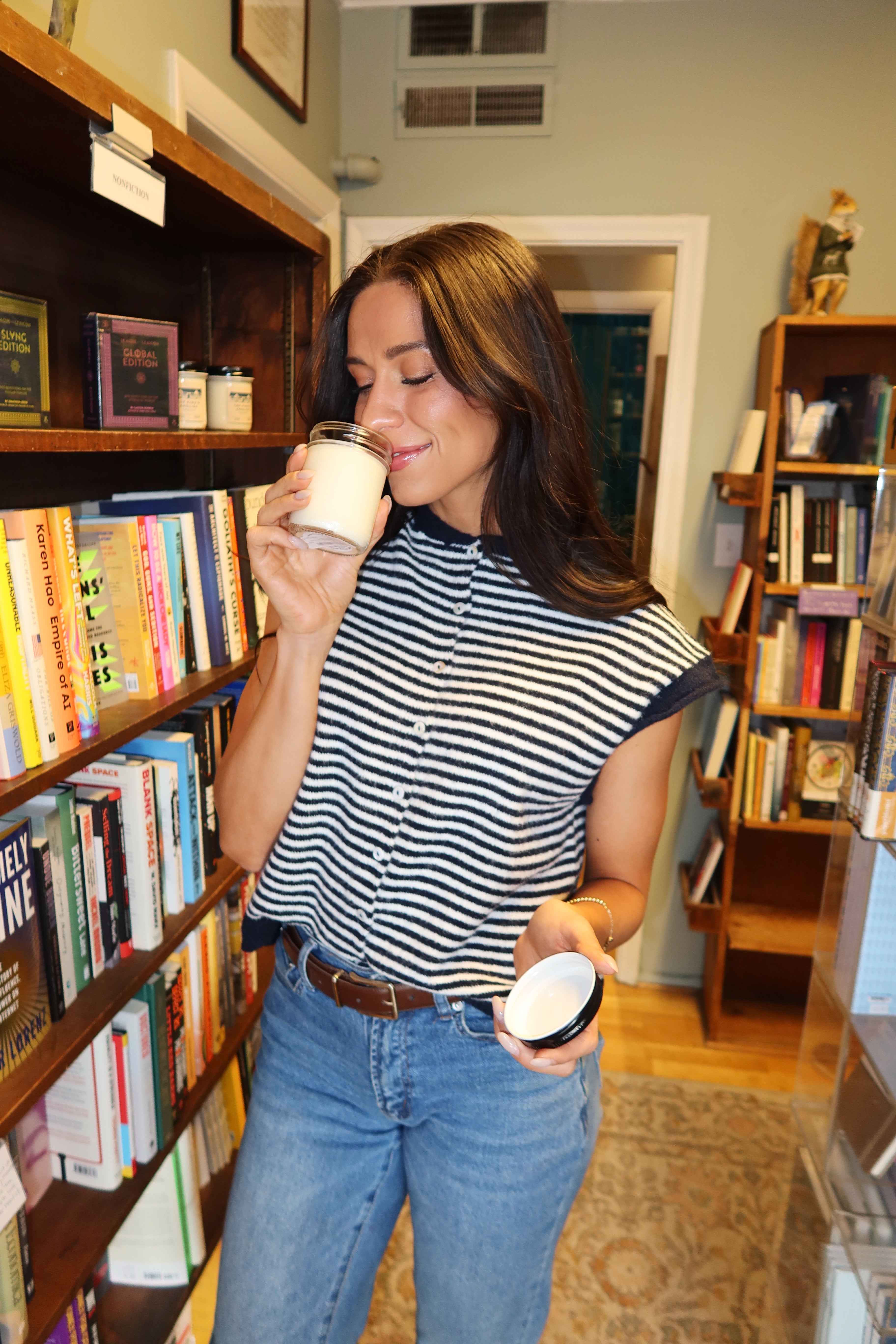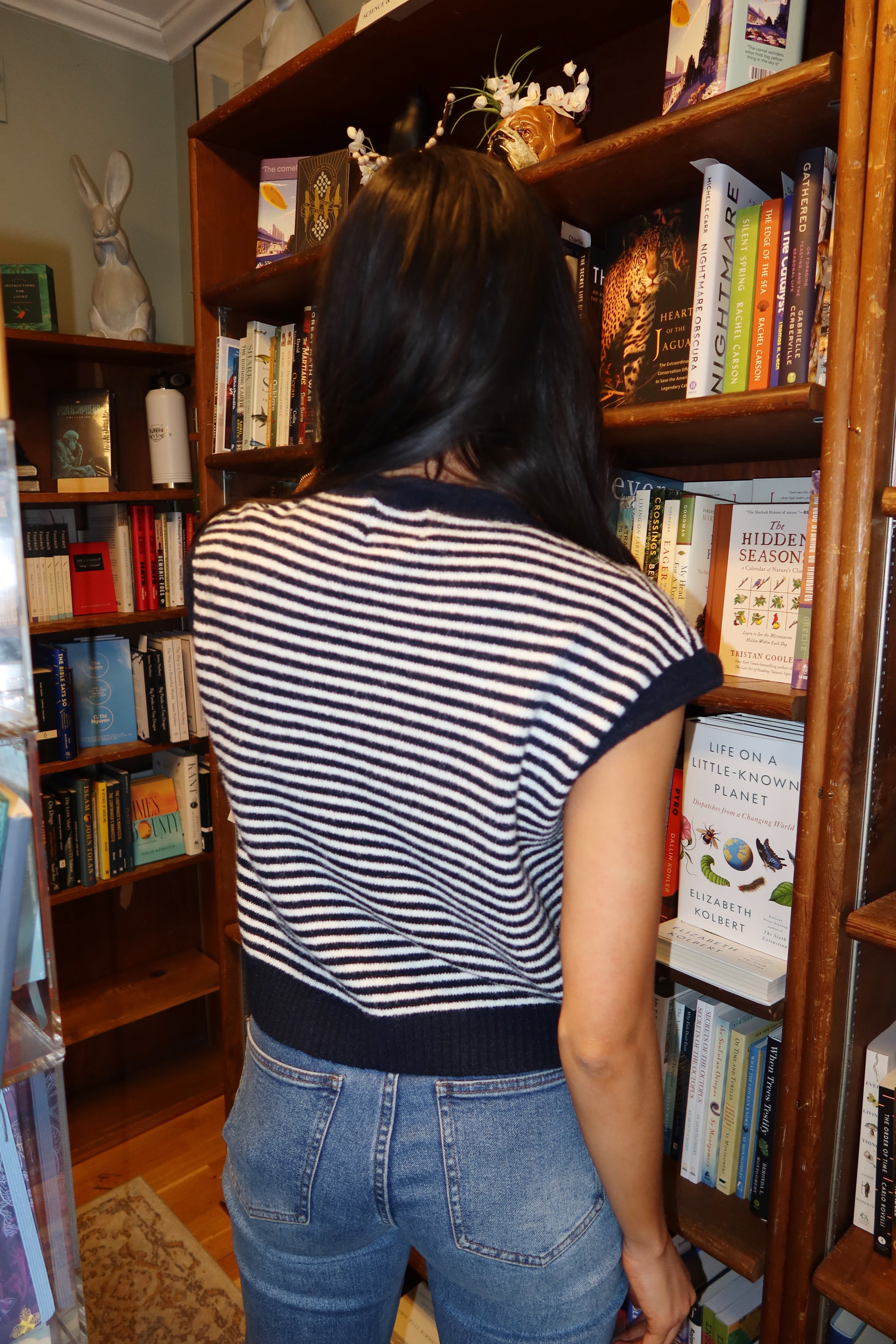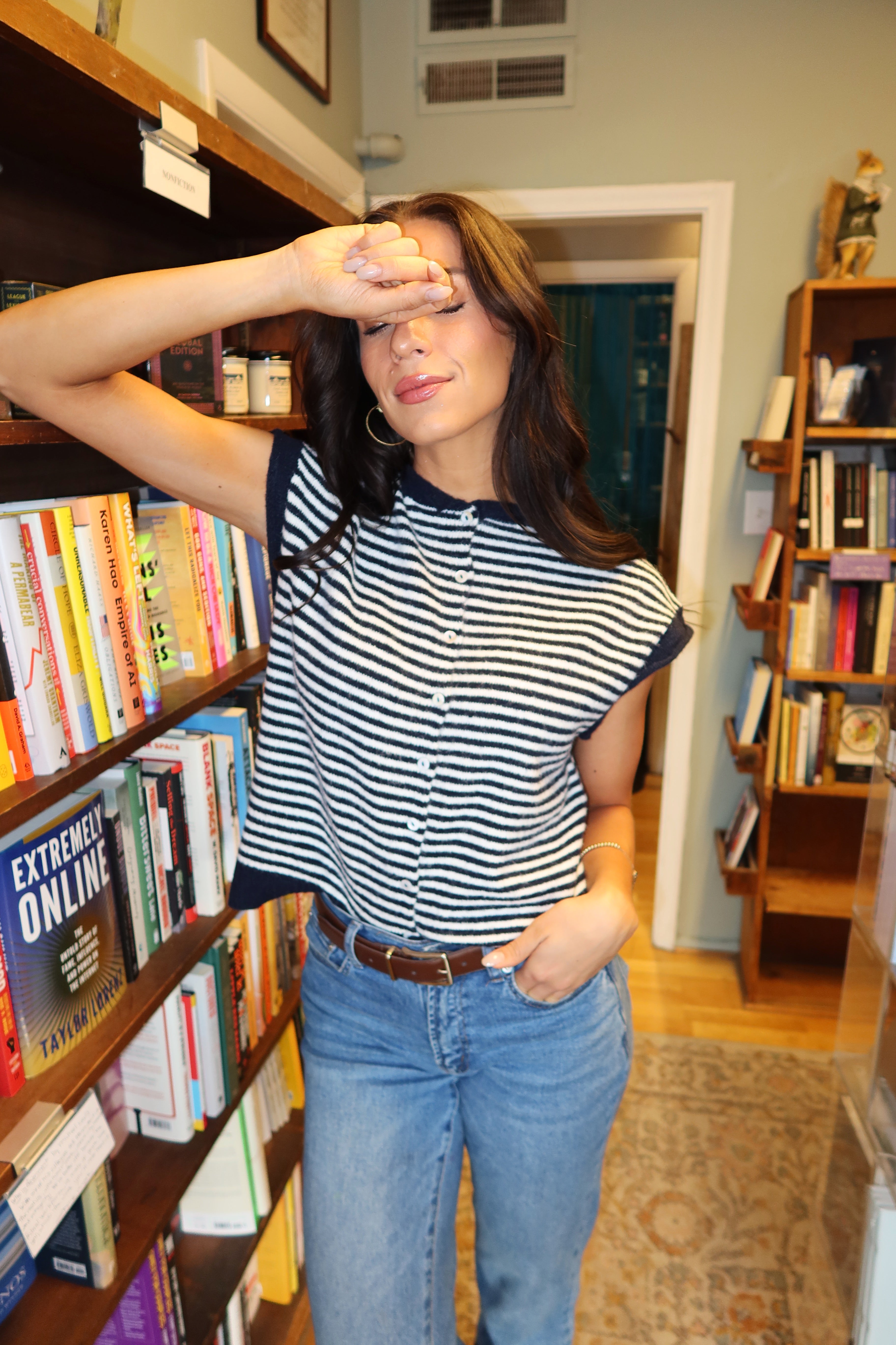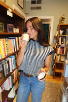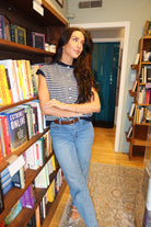 Piper Short Sleeve Cardigan in Navy Stripe