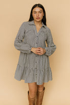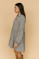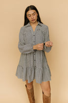Details: Functional buttons, nursing friendly. Navy plaid shirtdress, lined with side pockets.
