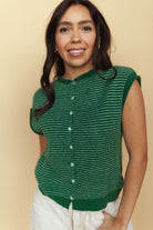 Piper Short Sleeve Cardigan in Kelly Green Pinstripe