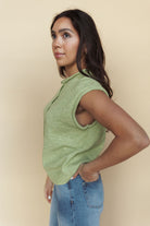 Piper Short Sleeve Cardigan in Lime