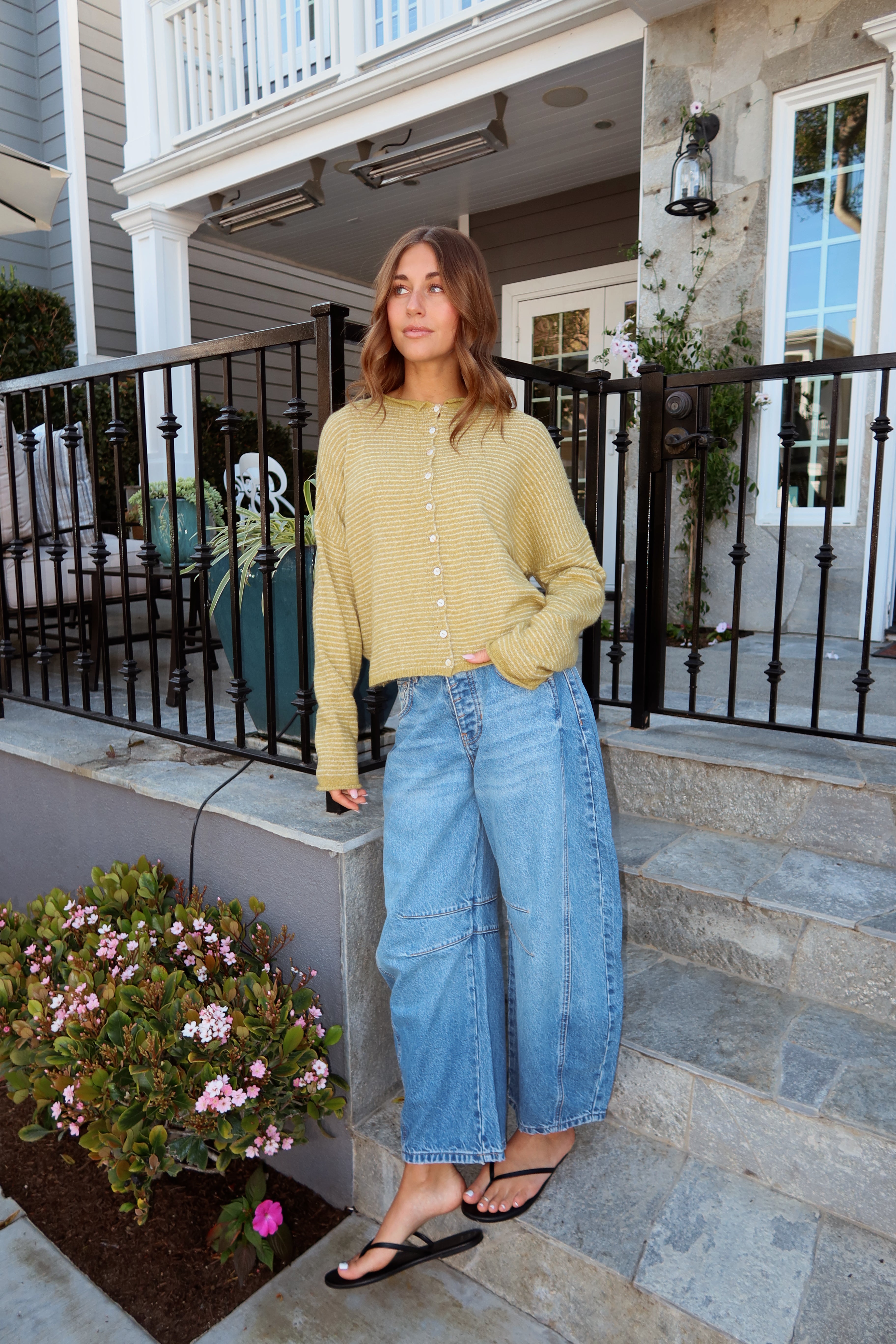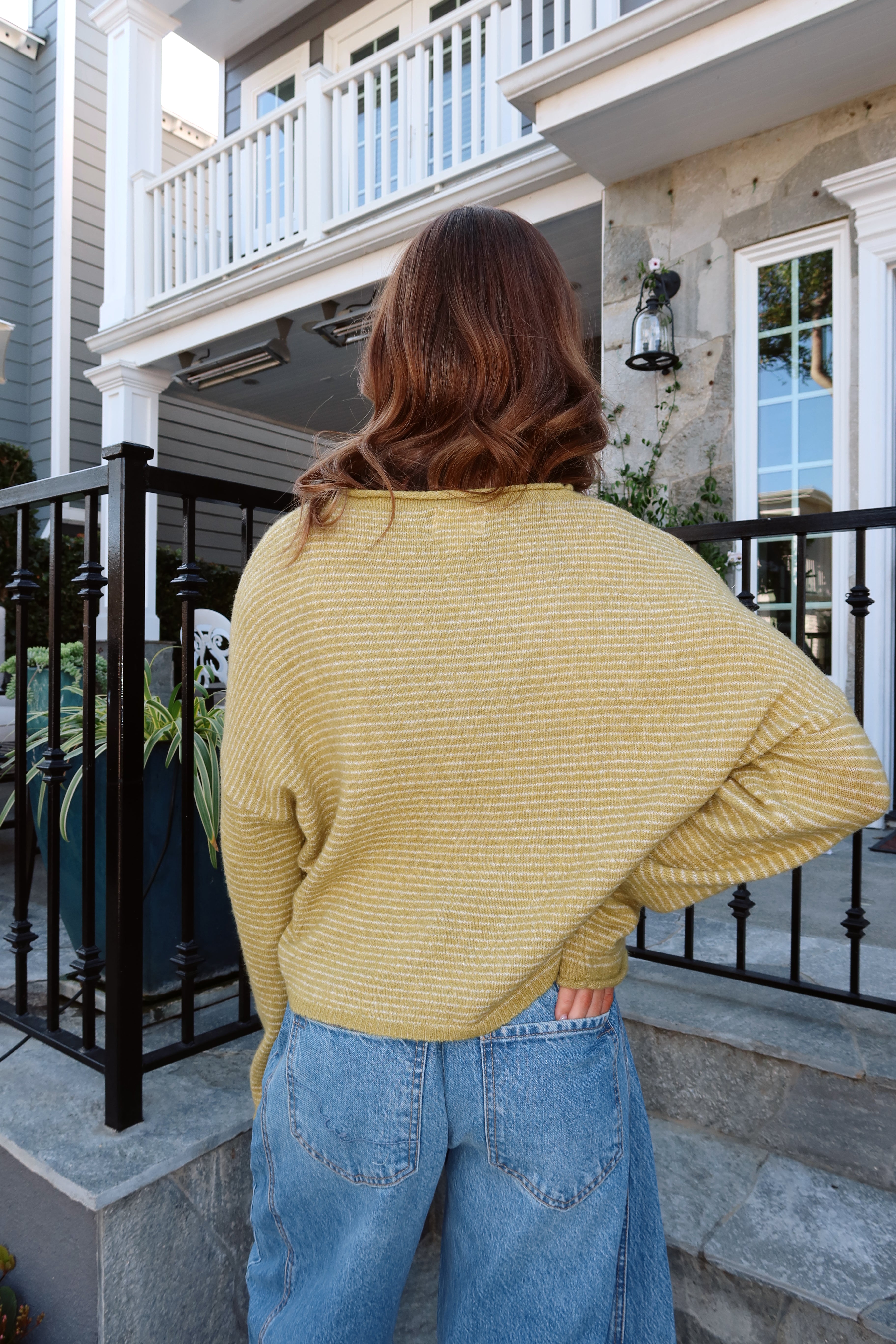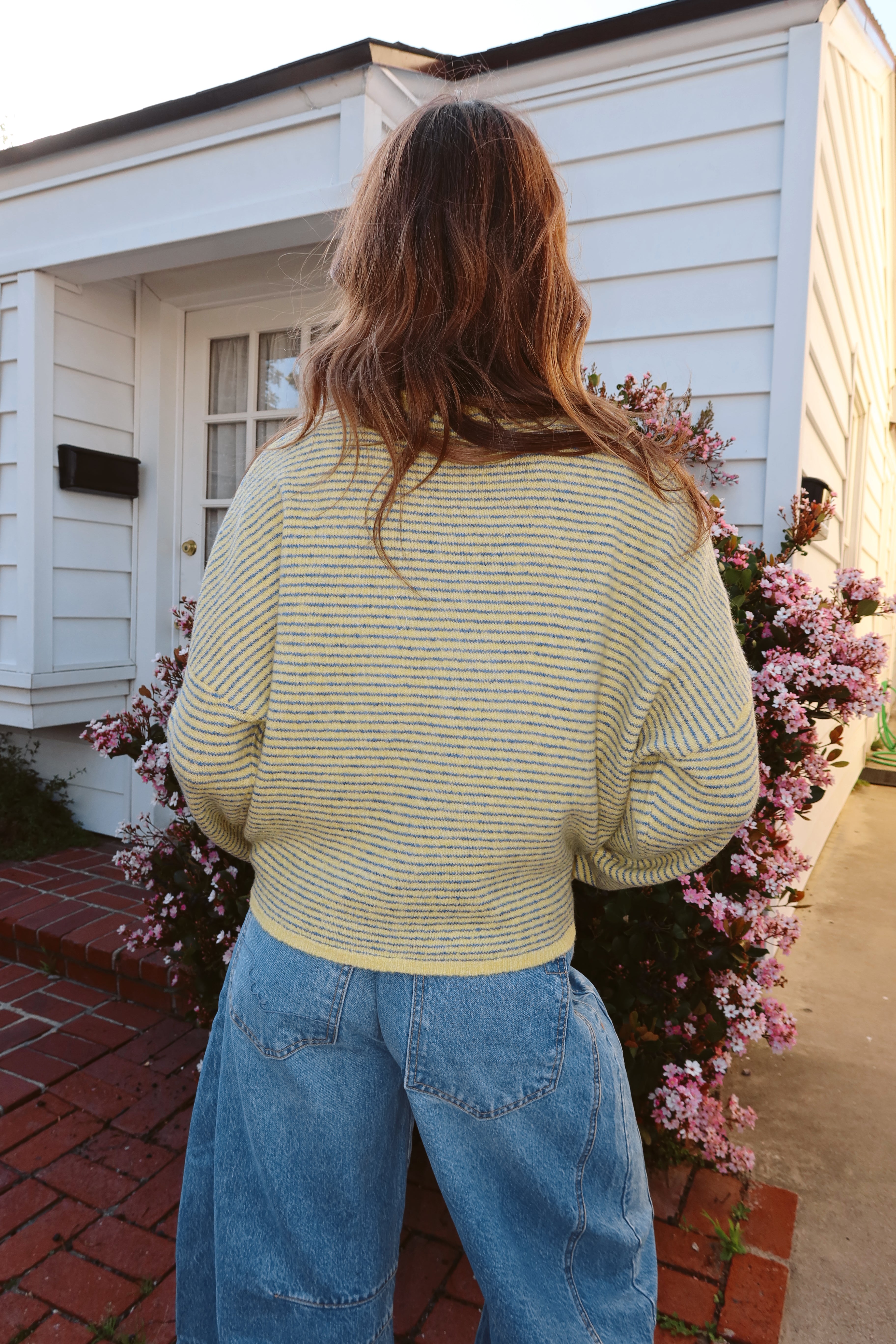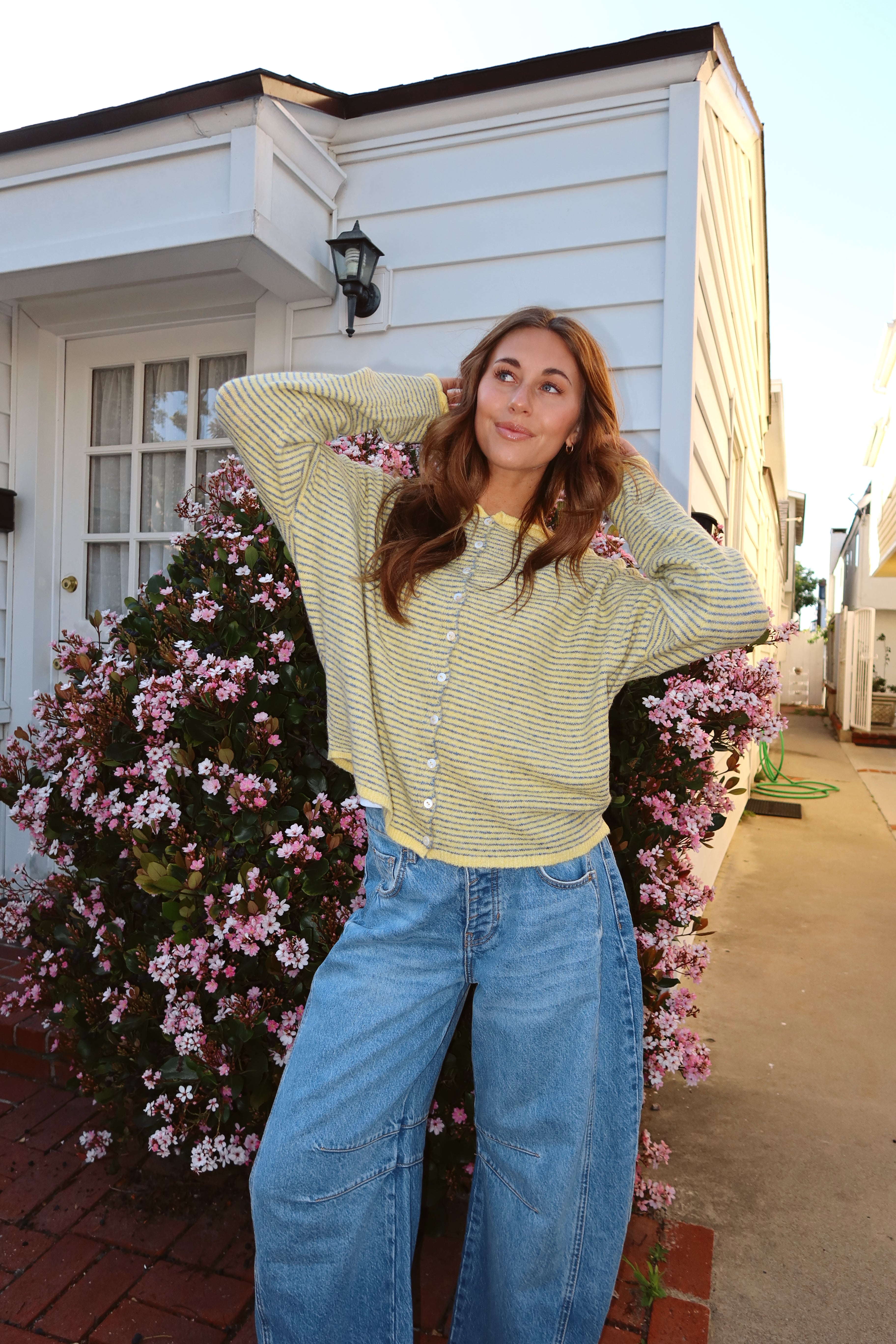 Piper Short Sleeve Cardigan in Butter Pinstripe