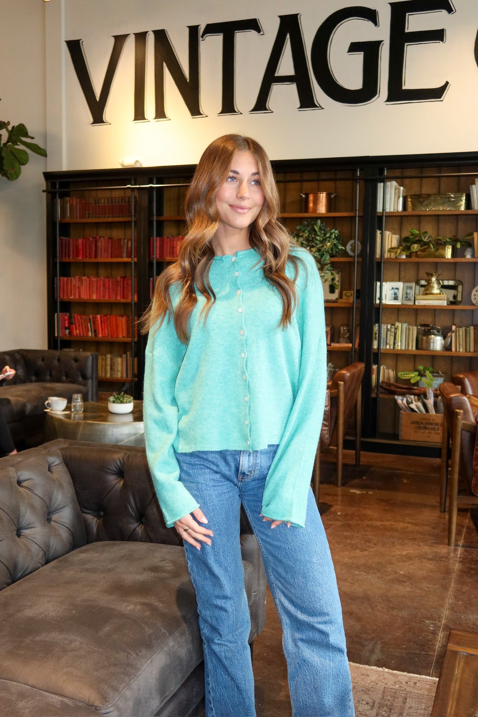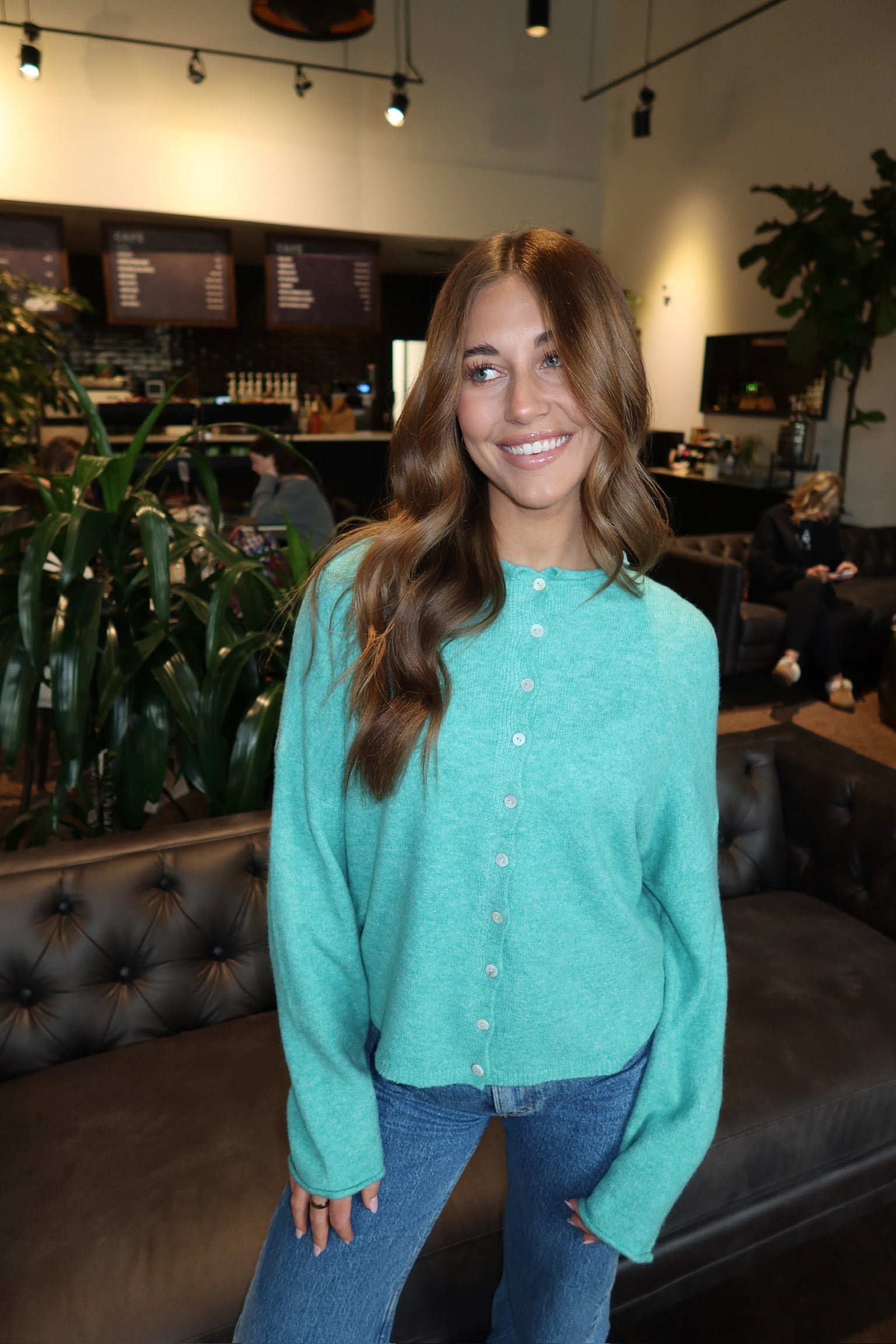 Piper Short Sleeve Cardigan in Kelly Green Pinstripe