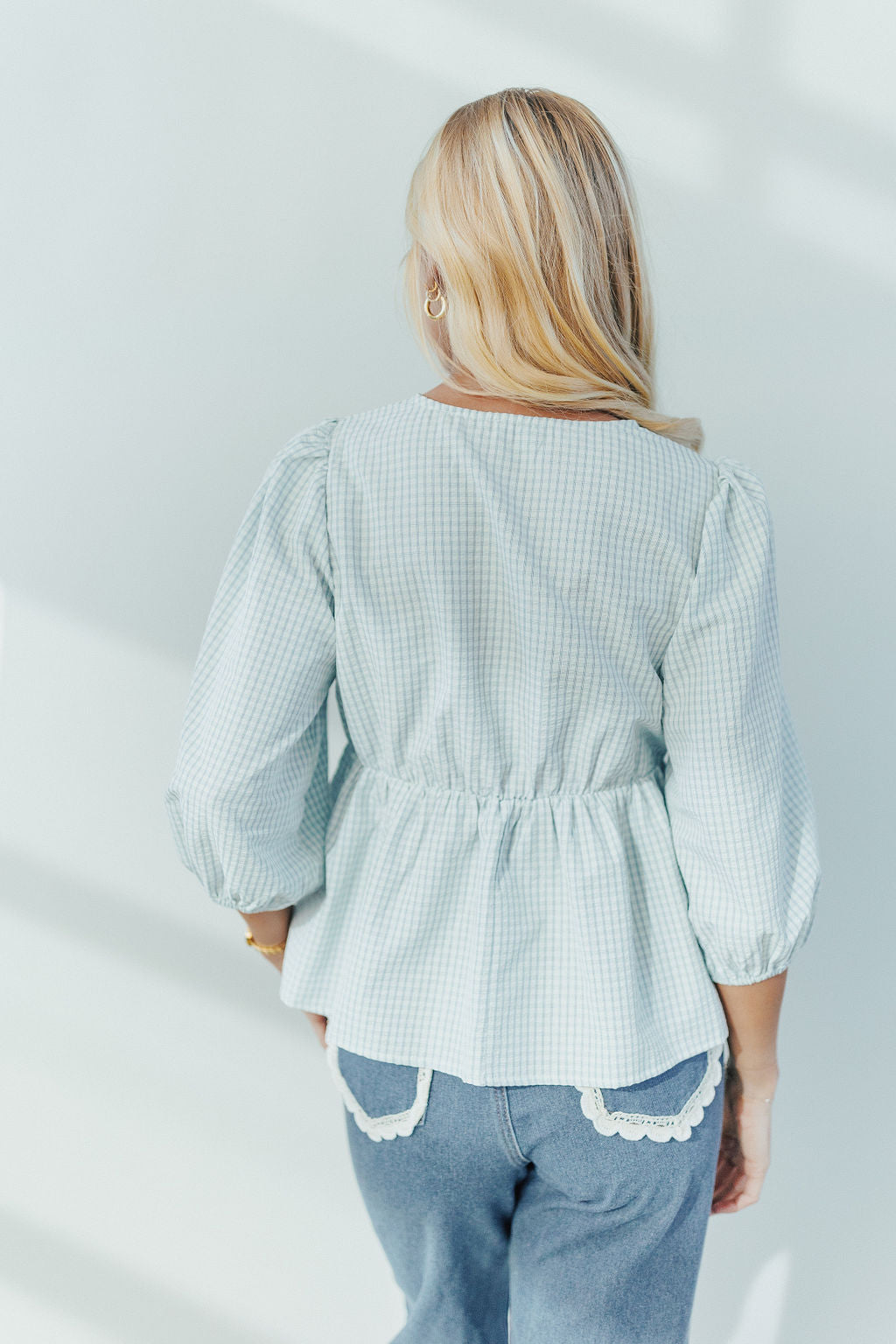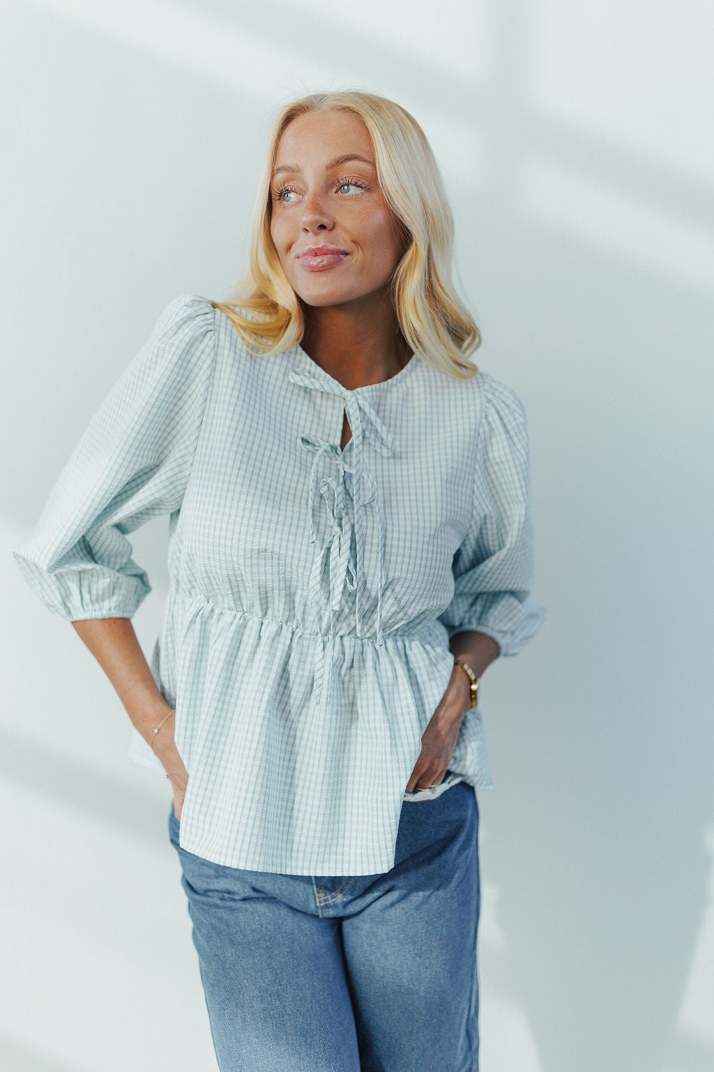 Harper Plaid Tie Top in Light Blue