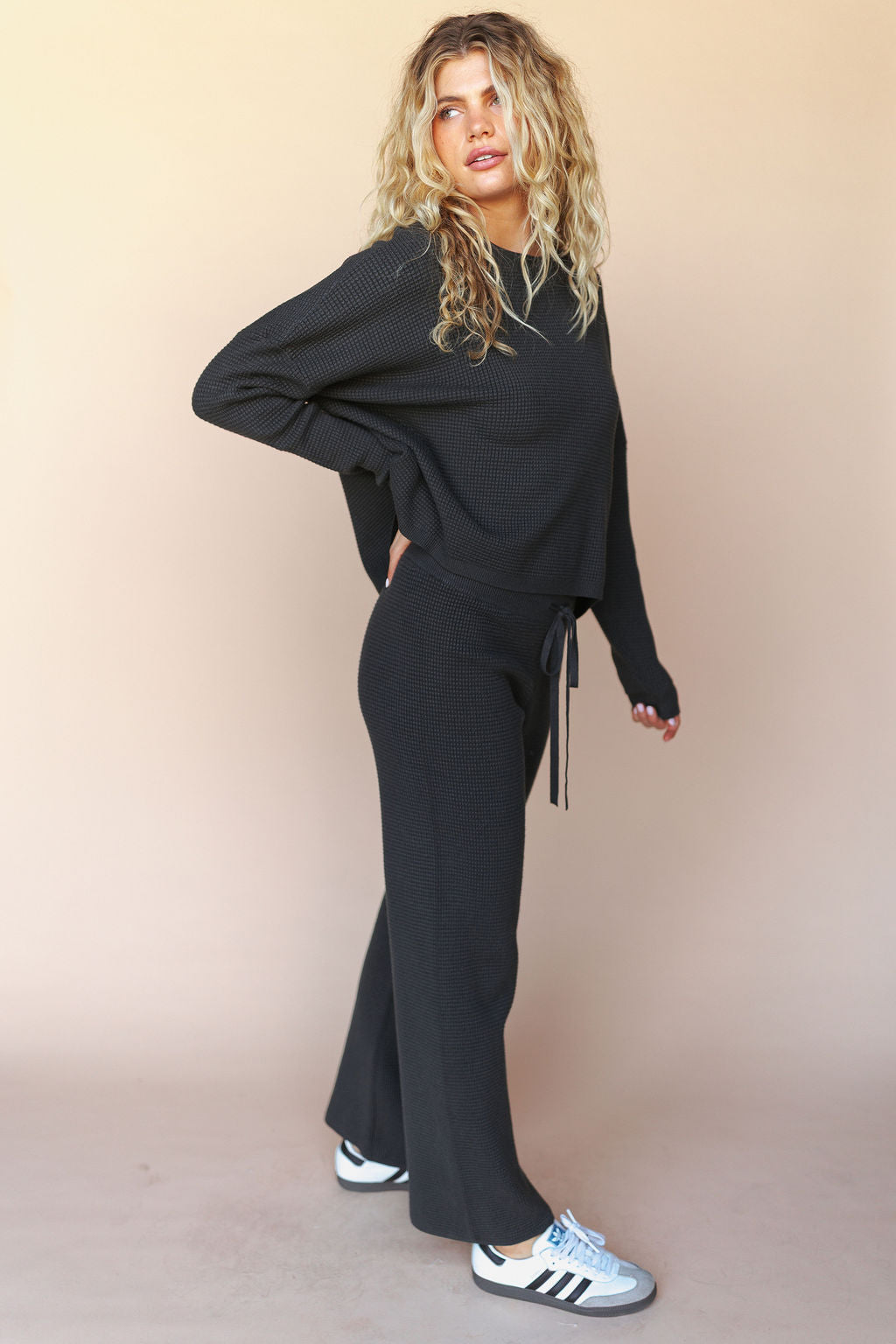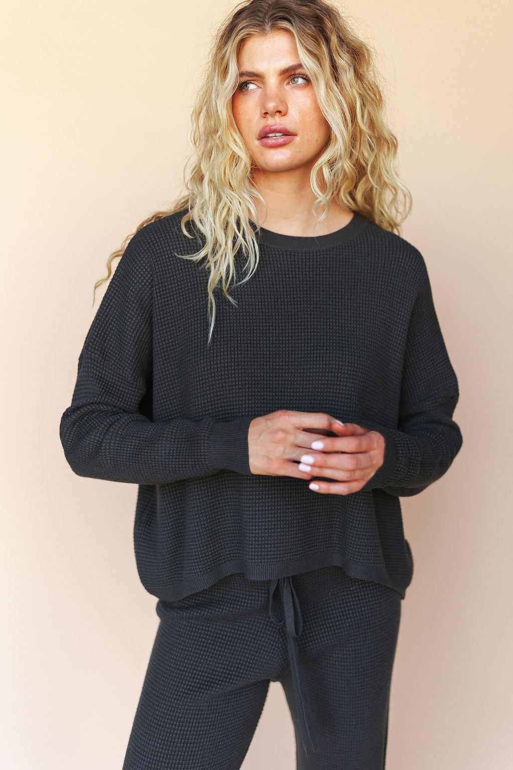 Cozy Girl Waffle Knit Sweater in Ink Navy