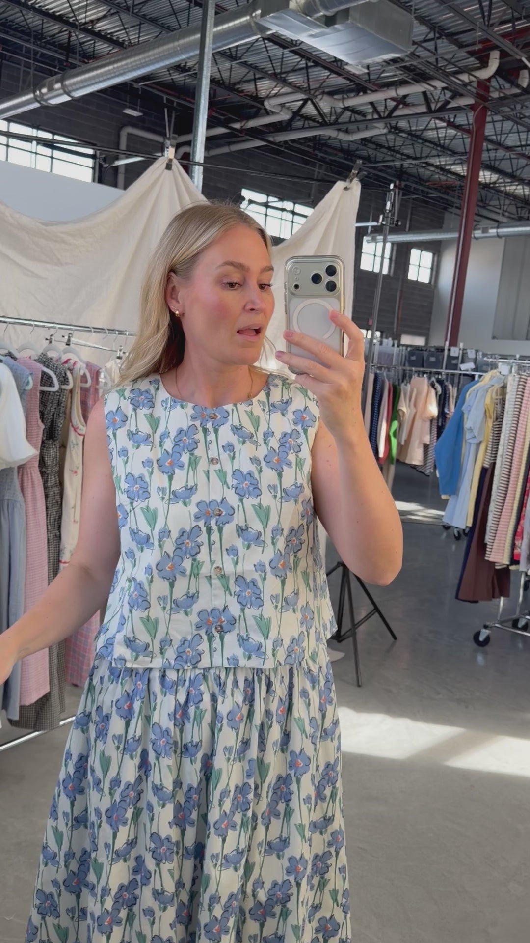 Main details: Floral tank on cotton poplin feel fabric. Button front, nursing friendly. Fully lined