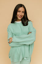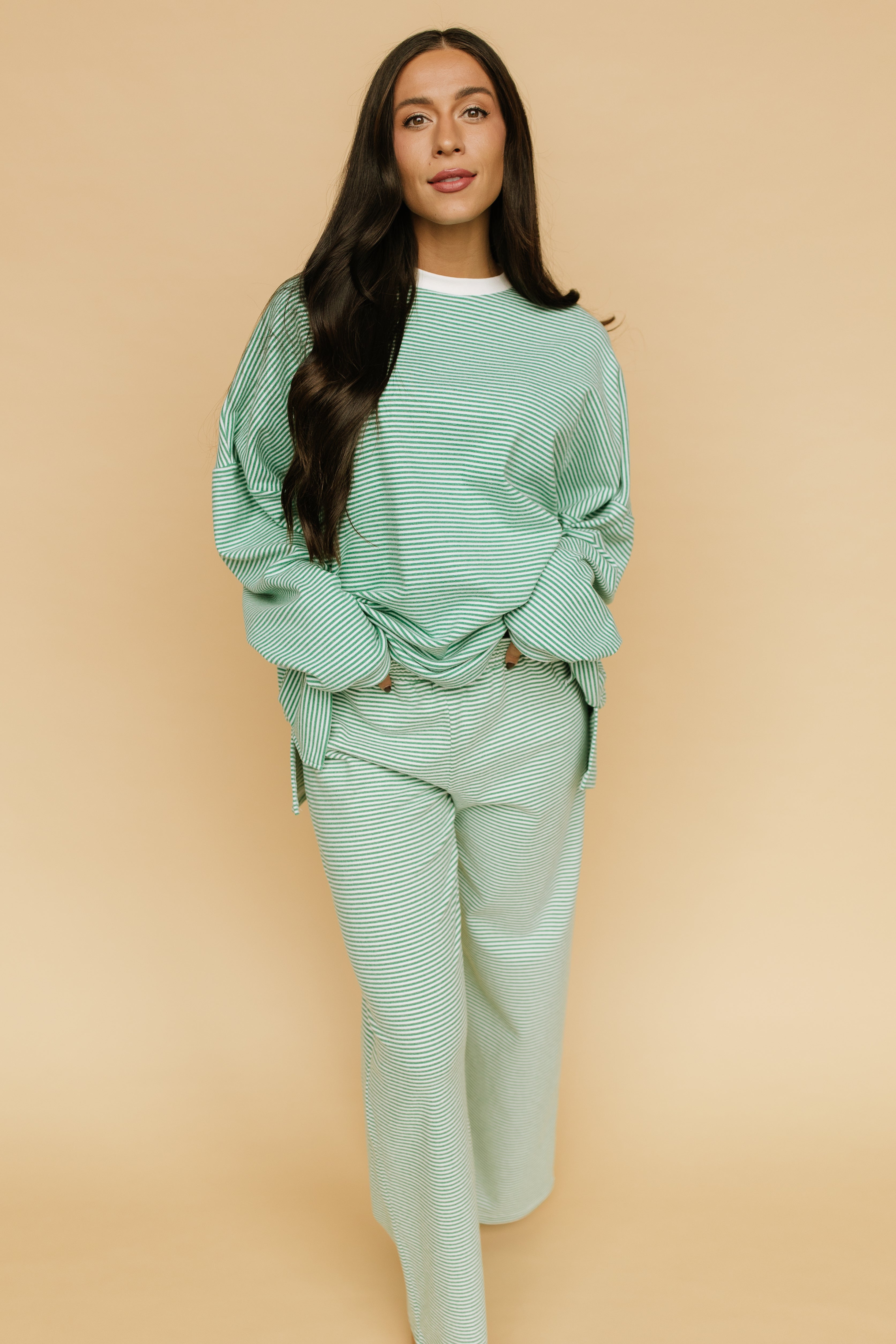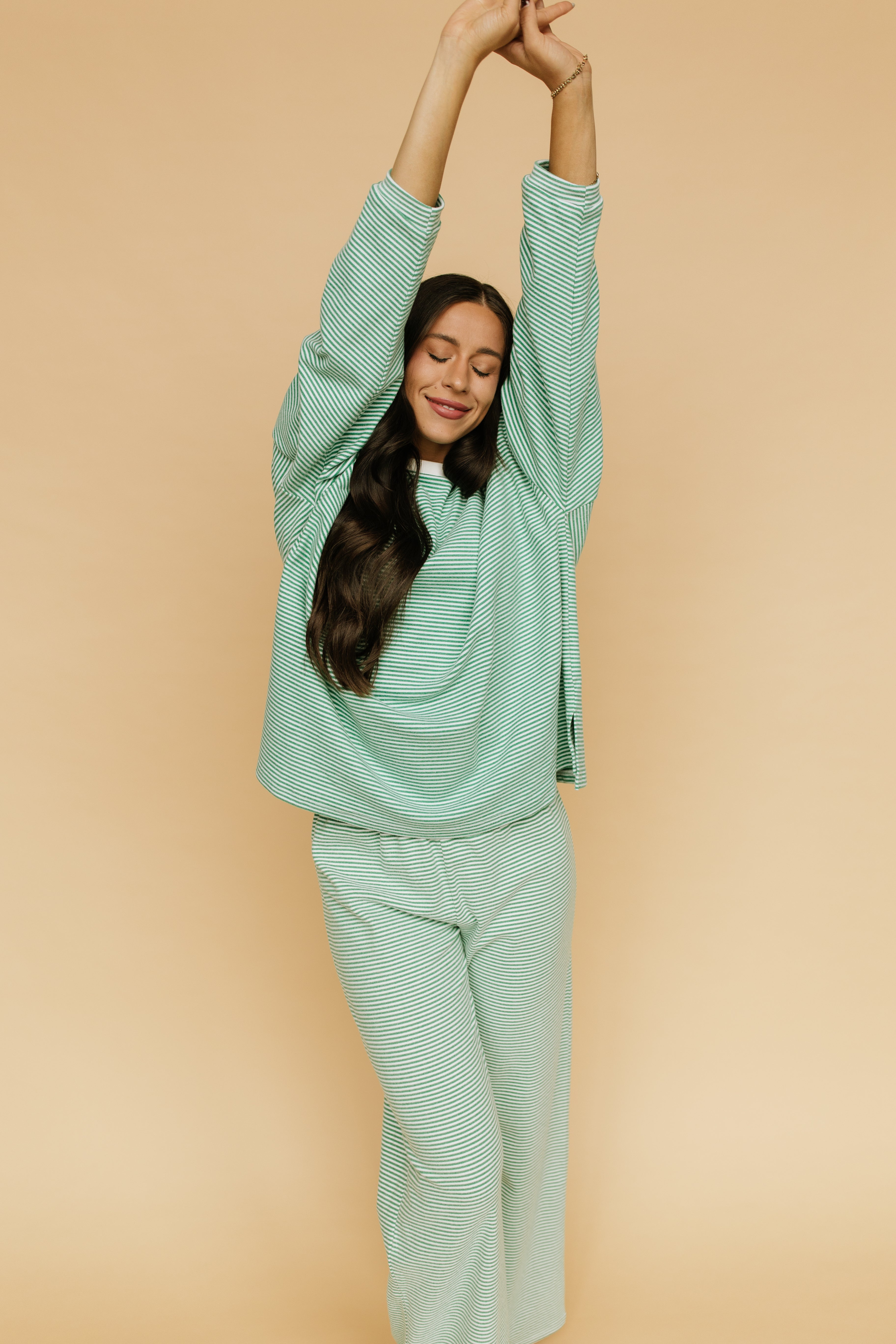 Details: Soft stretchy fleece stripe top. Bump friendly!