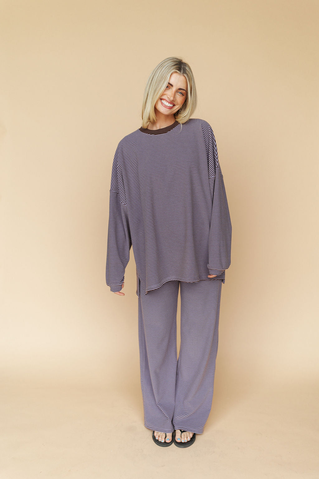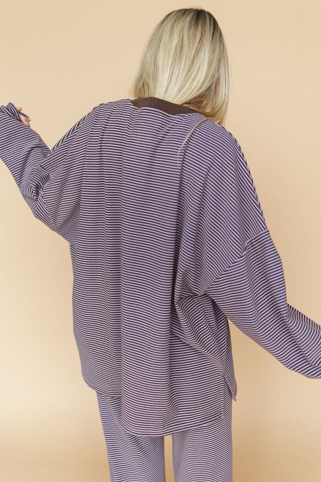 RESTOCKING Porter Fleece Stripe Top in Lavender
