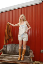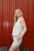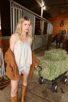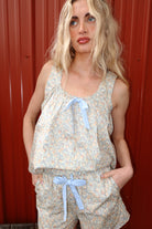 Main details: Floral tank with contrast gingham tie. No stretch or elastic in top. Lined! Pairs perfectly with the Prairie Darling Shorts!