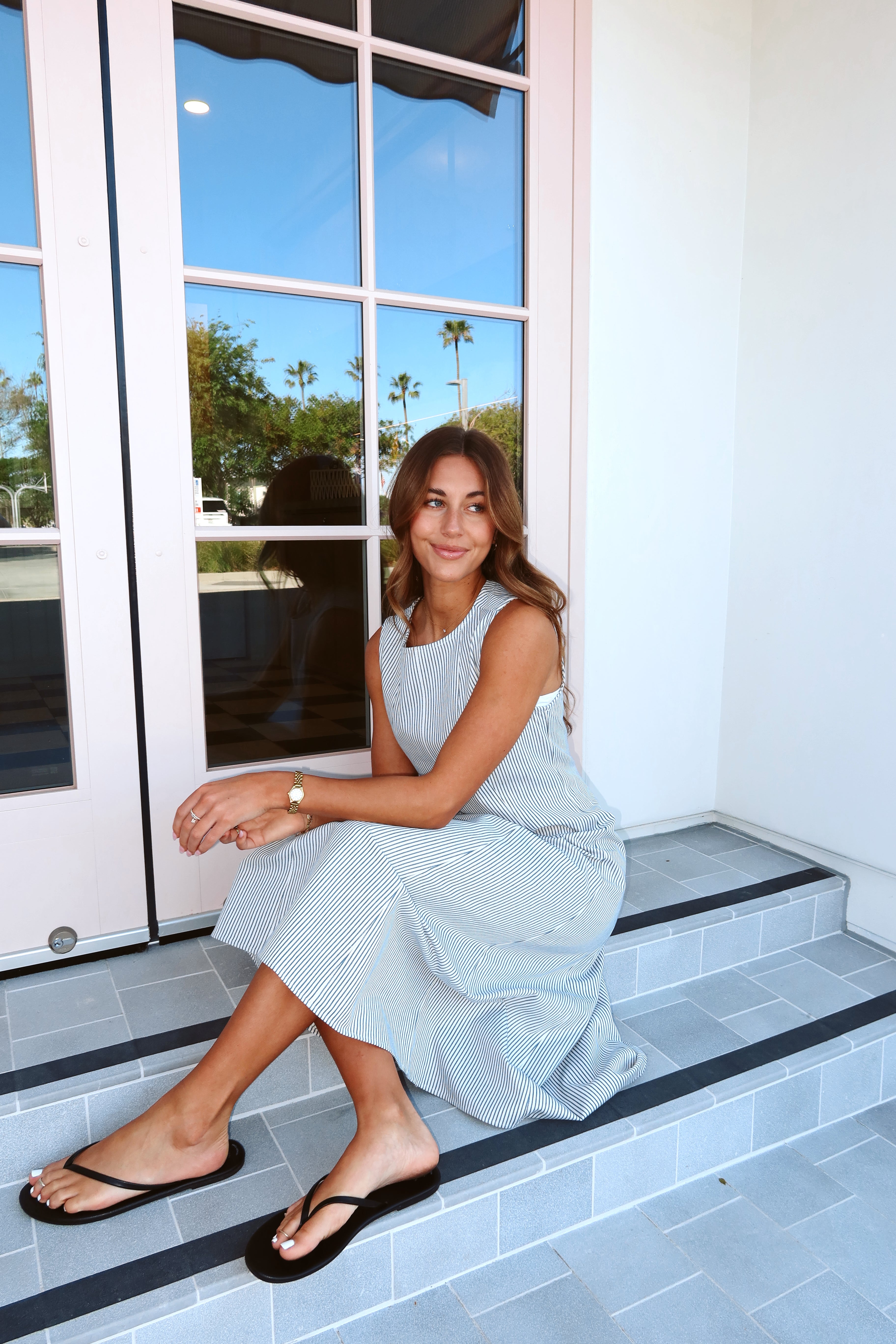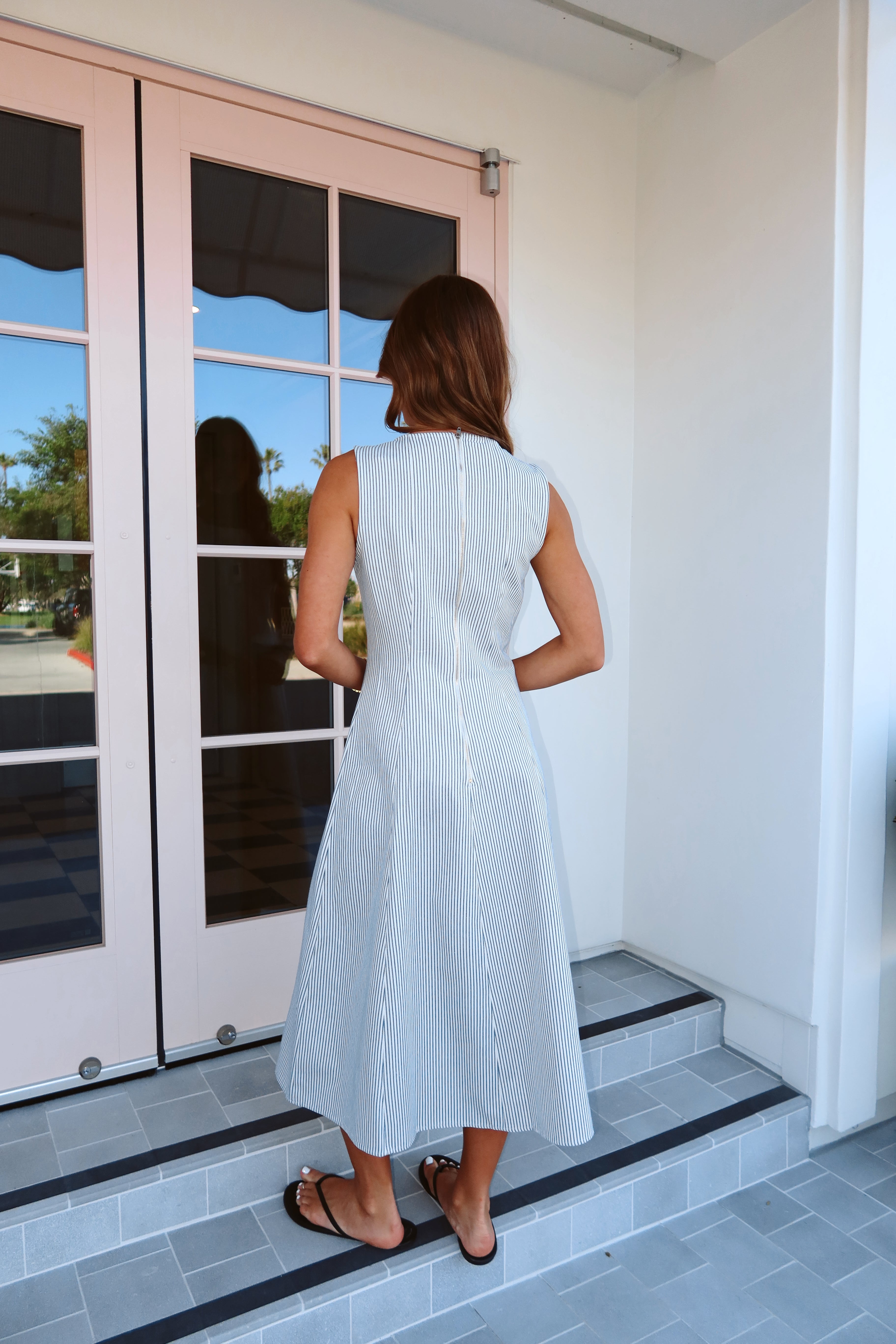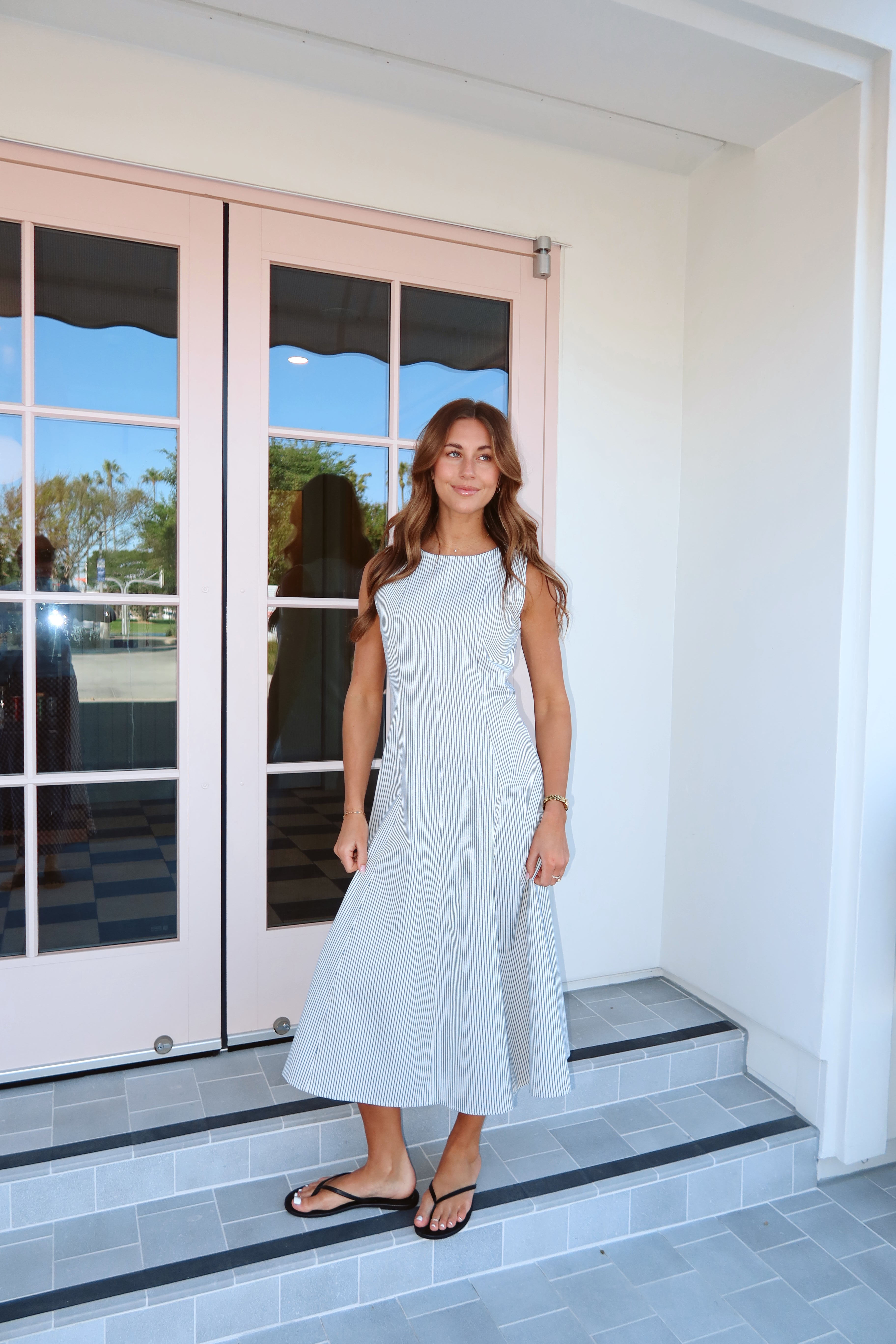 Laurel Pinstripe Midi in Dusty Blue