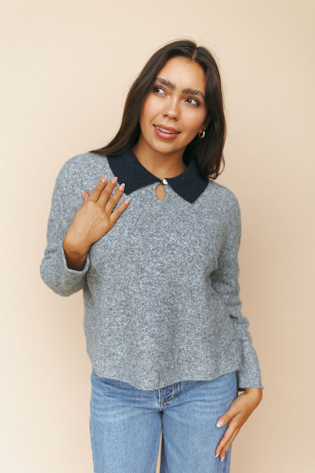 Colbie Polo Sweater in Grey