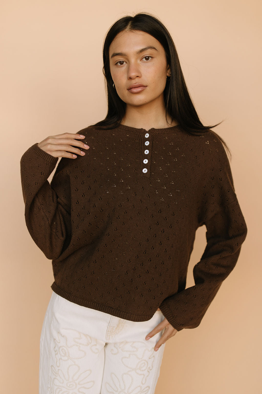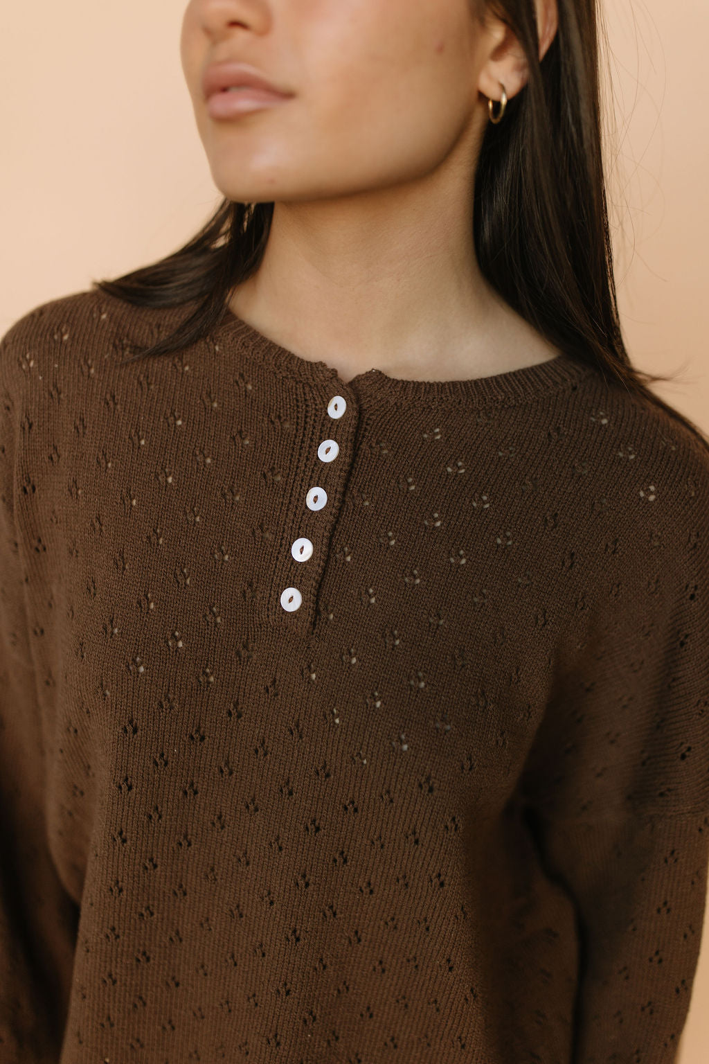Main details: Pointelle knit sweater with button front. Possibly nursing friendly