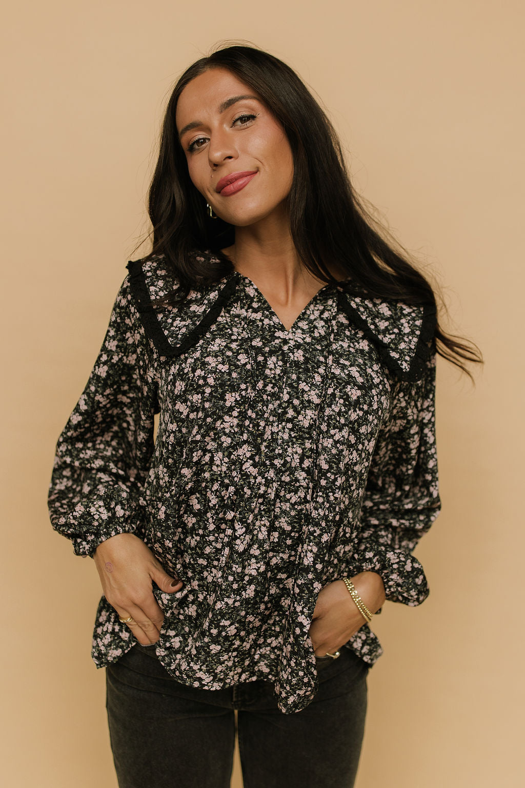 Amelia Floral Blouse in Black