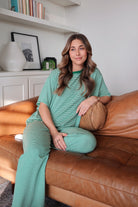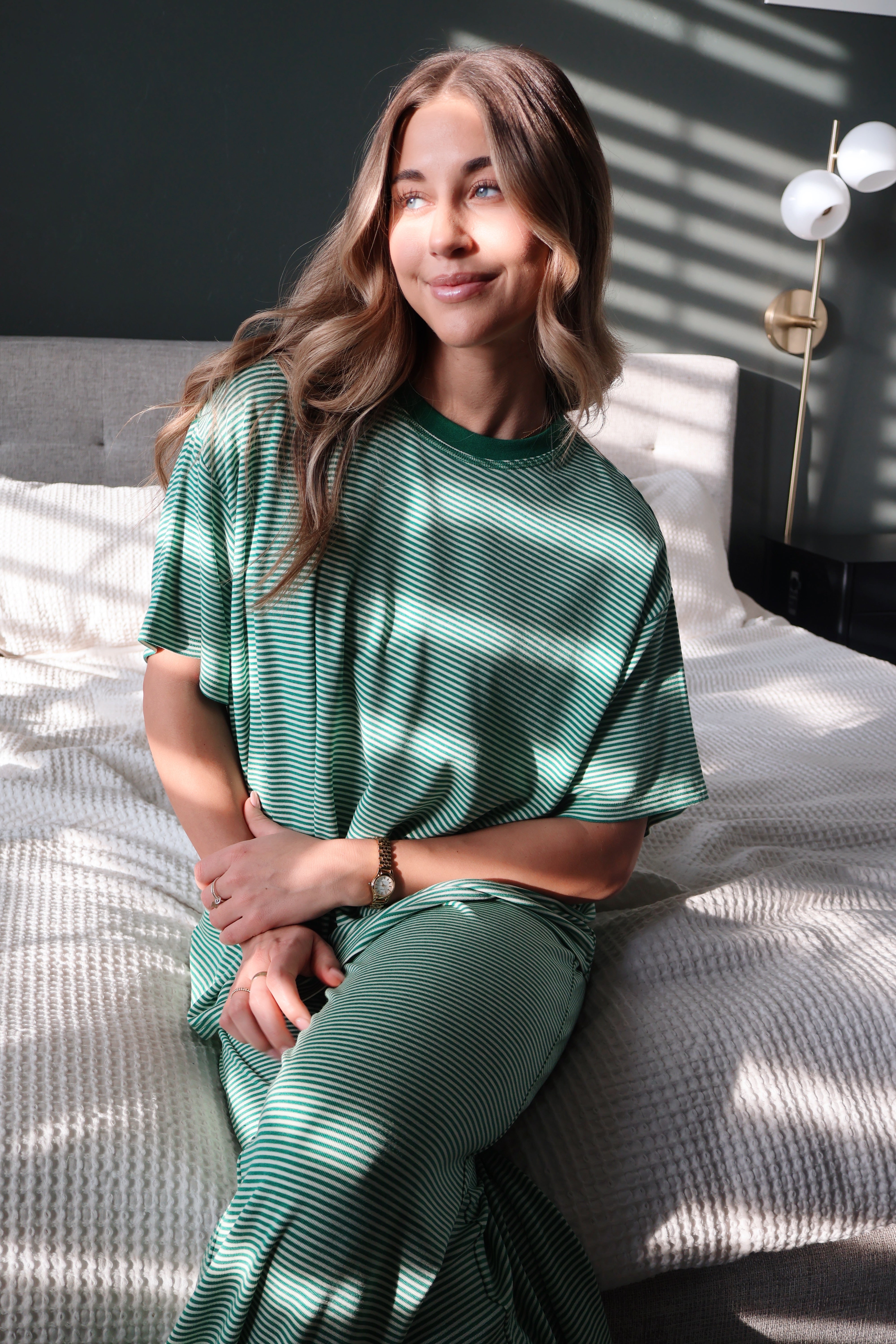 Main details: Ultra soft stretchy slightly ribbed stripe tee with contrast band