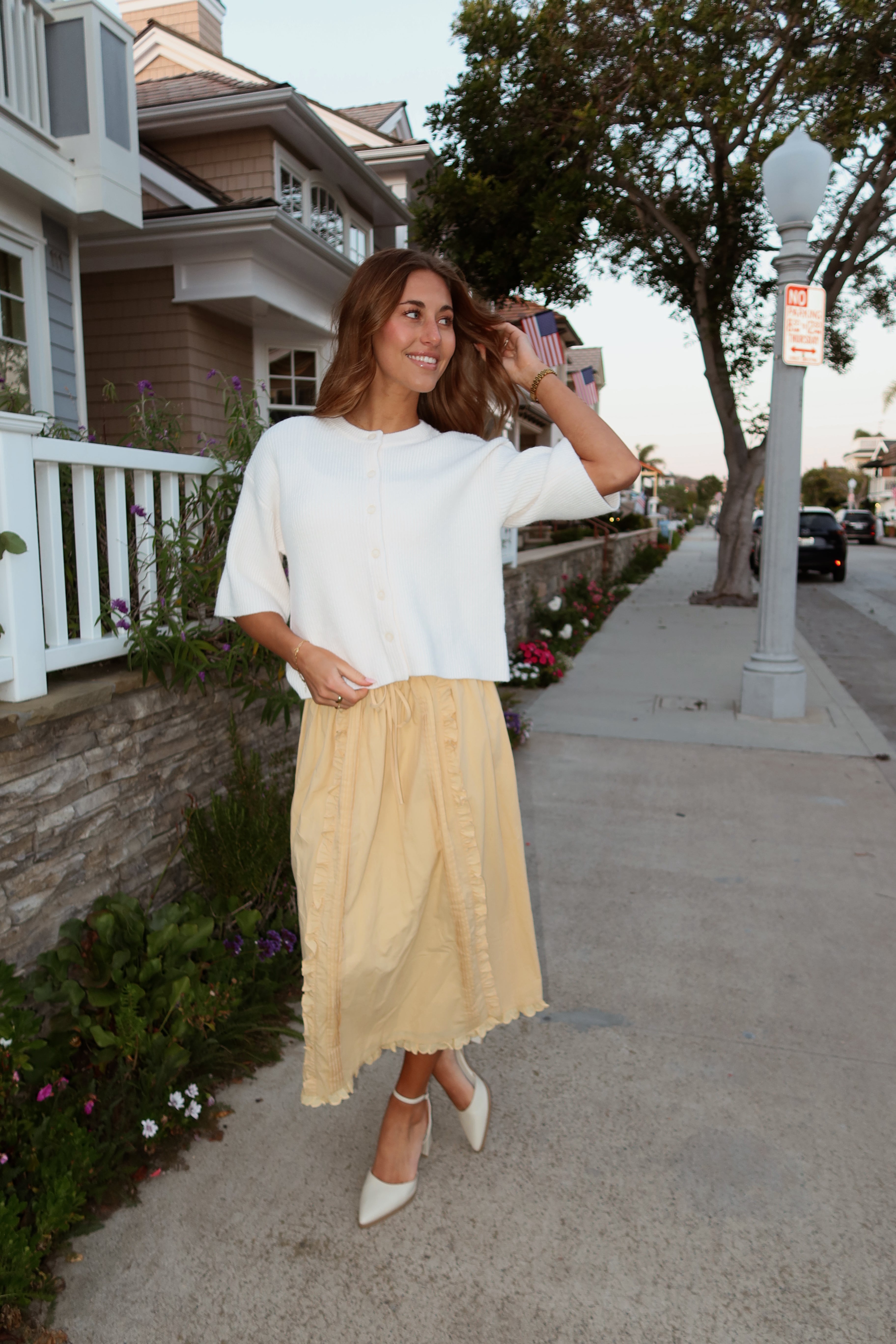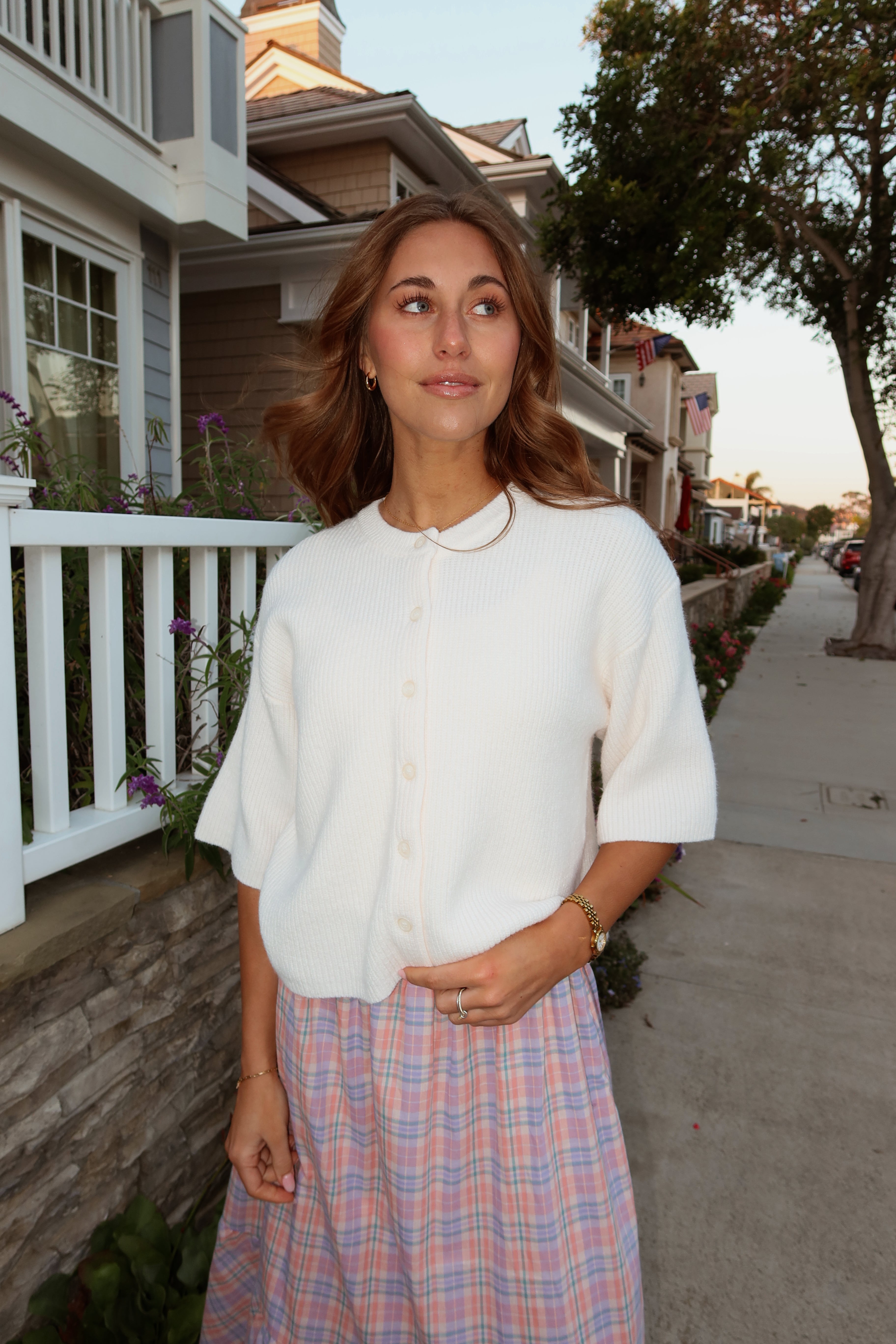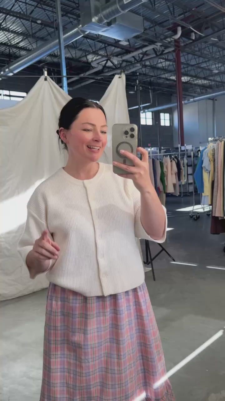 Main details: Soft ribbed knit cardigan with boxy half-sleeves and button down front, nursing friendly! Stretchy non-sheer fabric