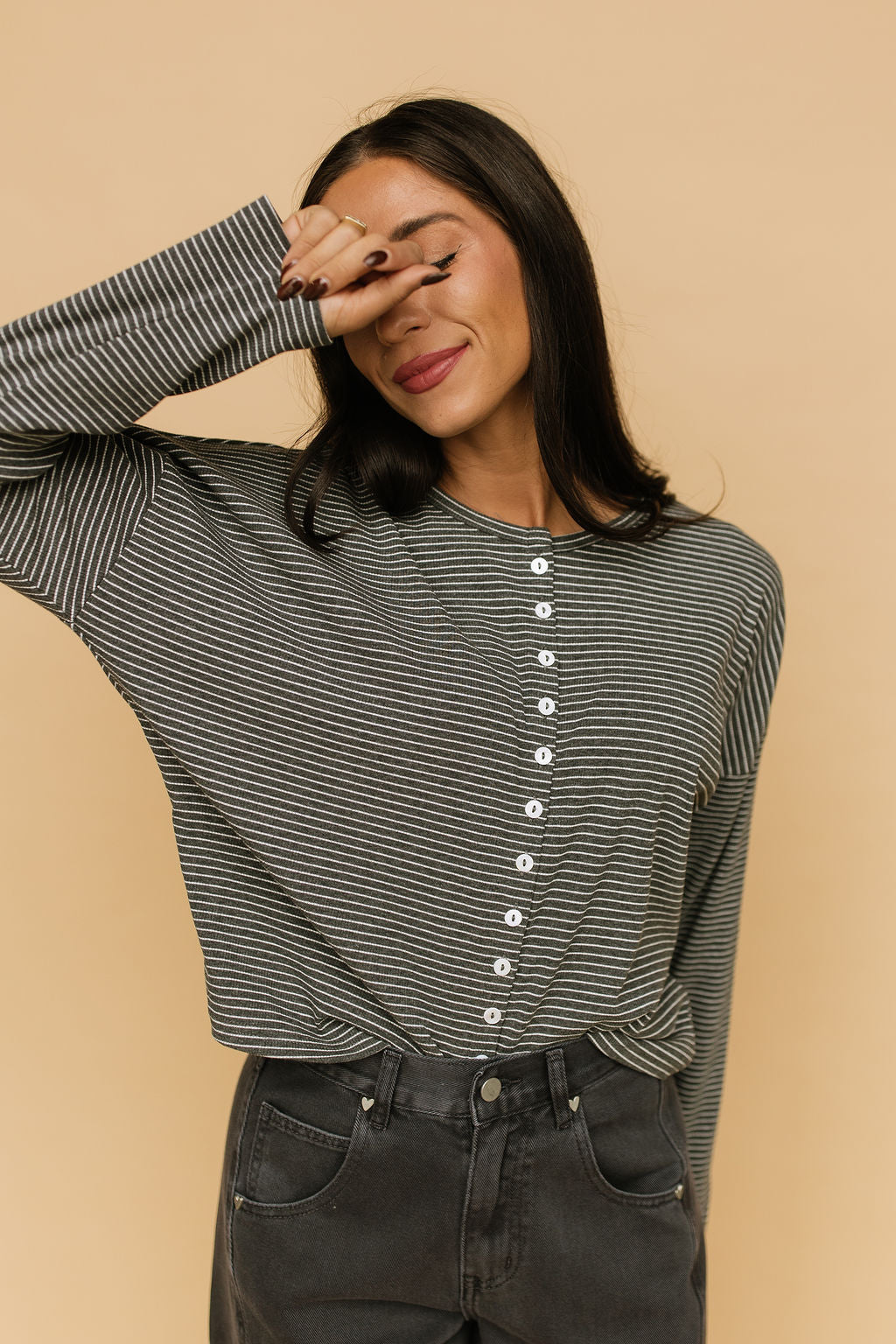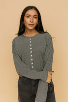 Details: Nursing friendly with functional buttons, soft slightly stretchy ribbed fabric