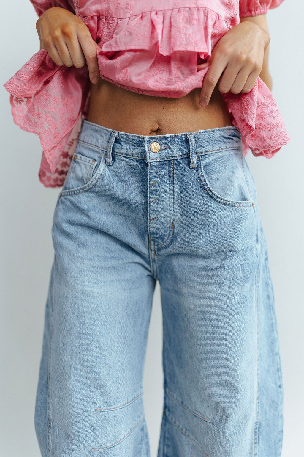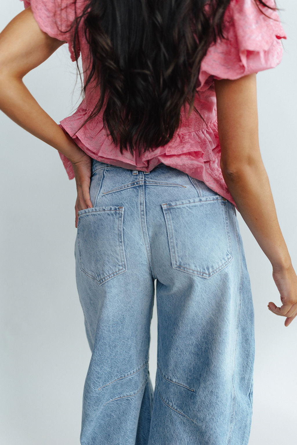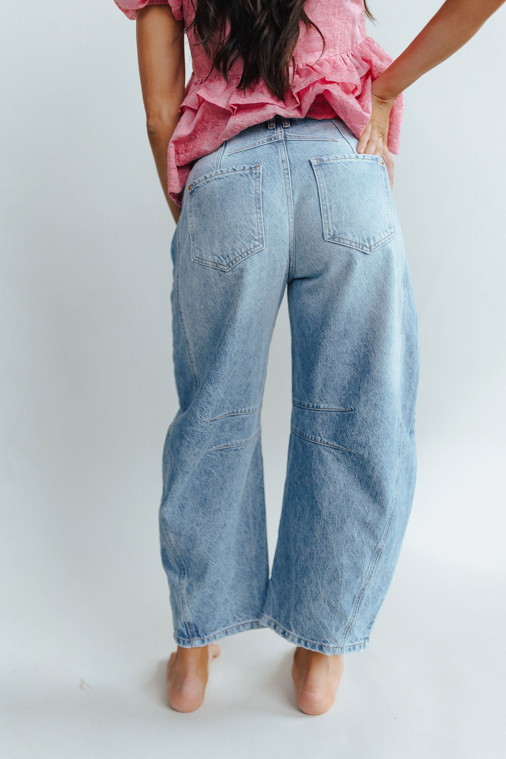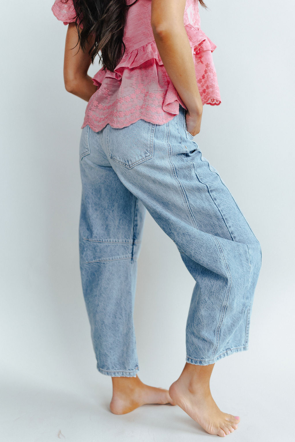 Free People Good Luck Mid-Rise Barrel Jeans in Ultra Light Beam