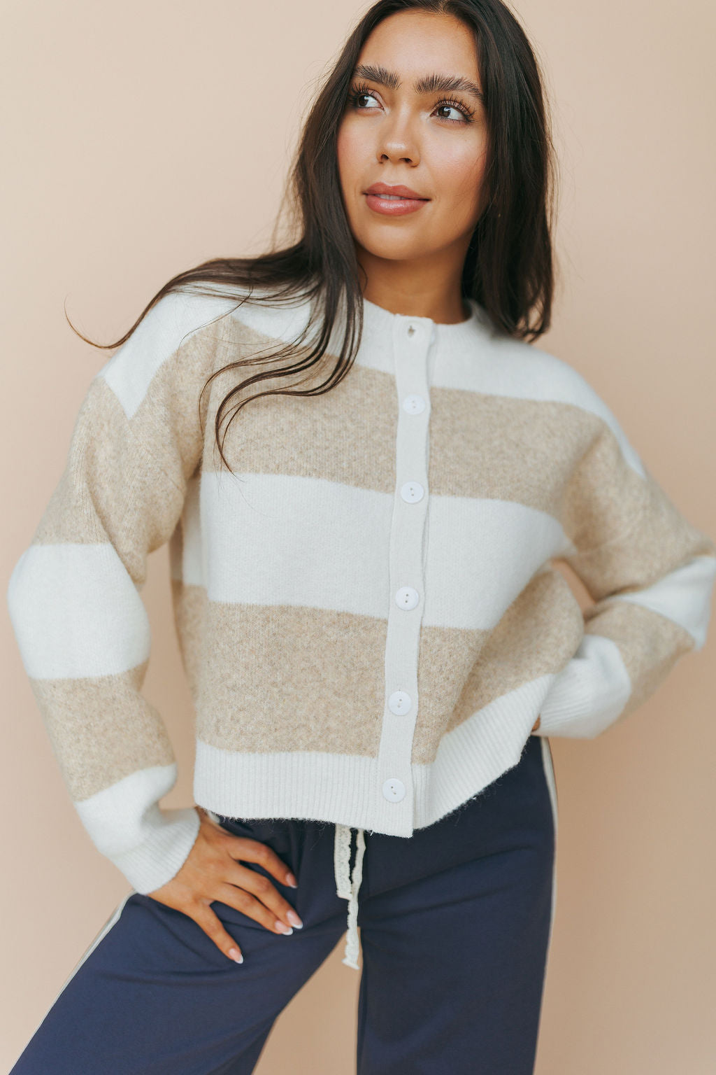 Jace Stripe Cardigan in Cream