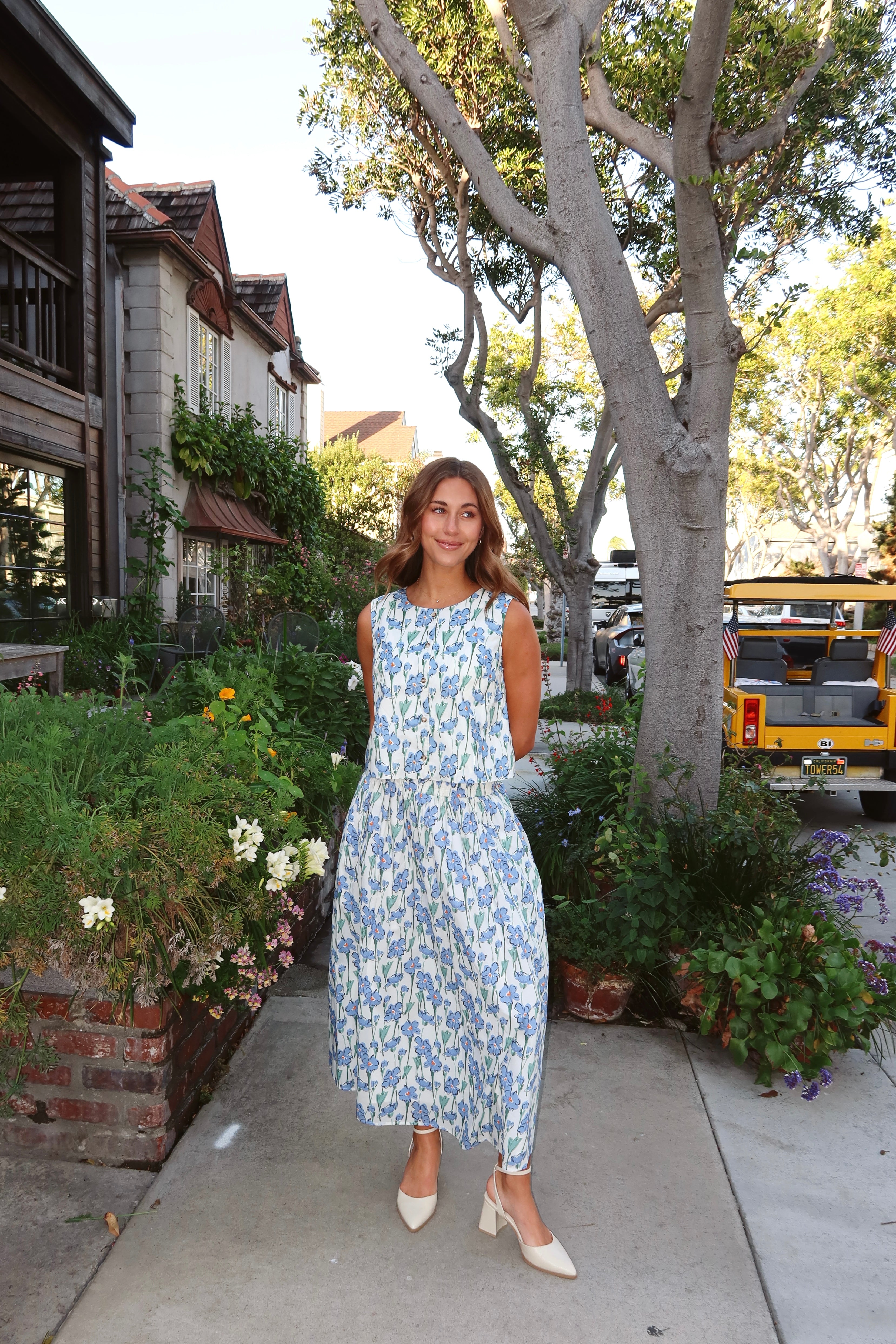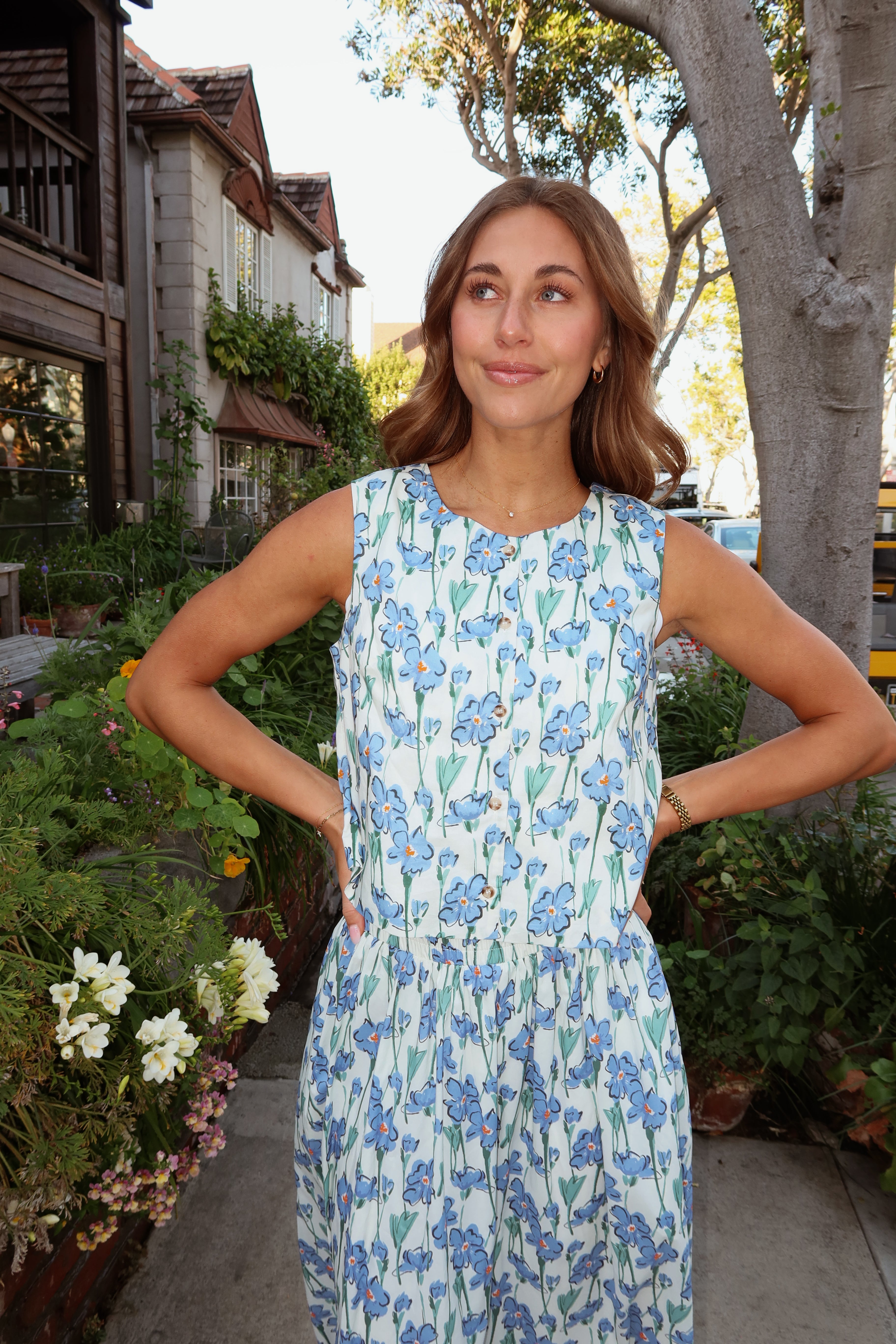 Main details: Floral tank on cotton poplin feel fabric. Button front, nursing friendly. Fully lined