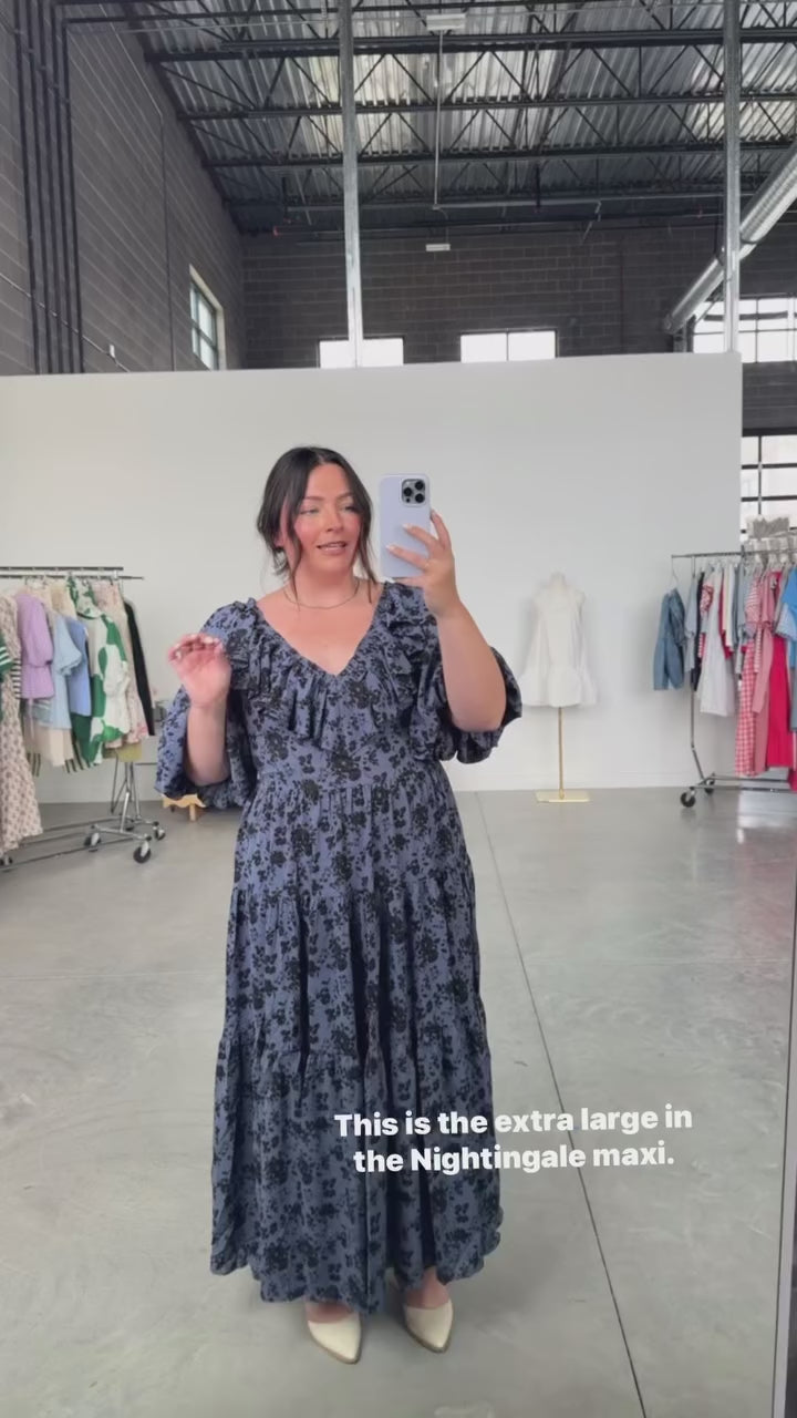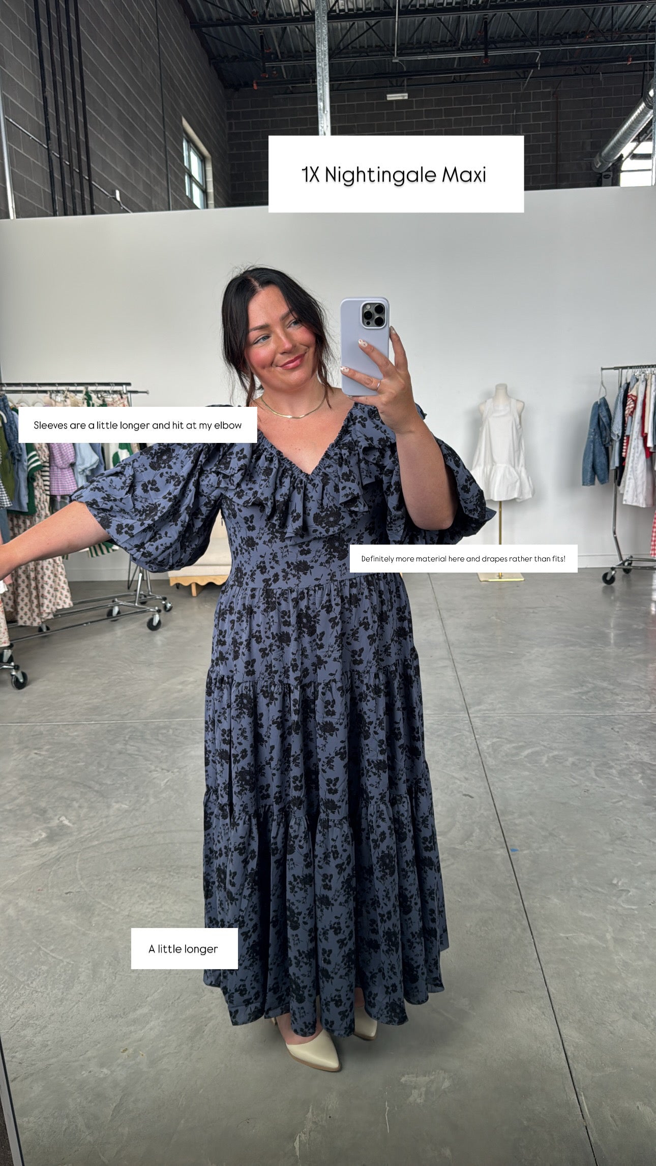 Our sizing suggestion: Runs true to size with plenty of room in bump. Base sizing off what you need in the bust. Bump friendly! Side zipper closure