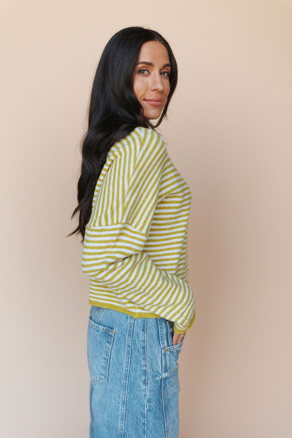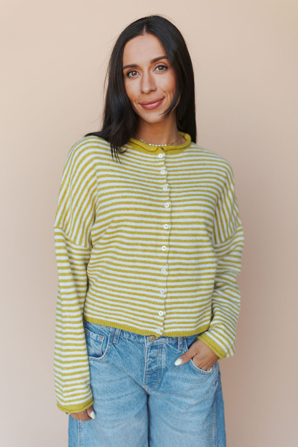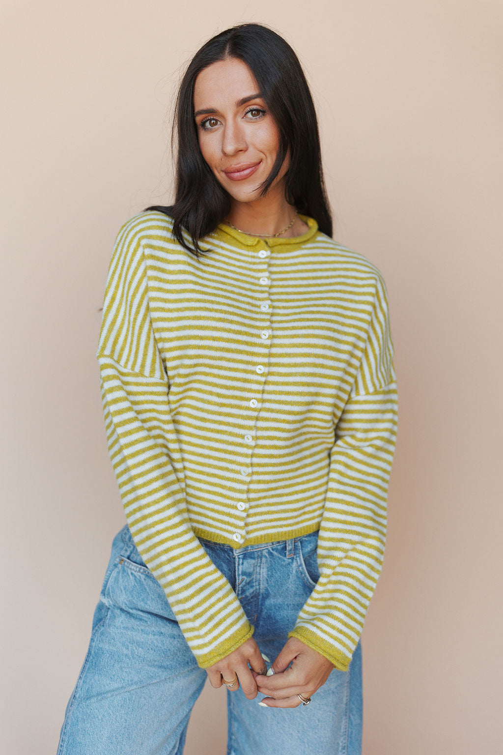 Piper Cardigan in Dijon Pinstripe
