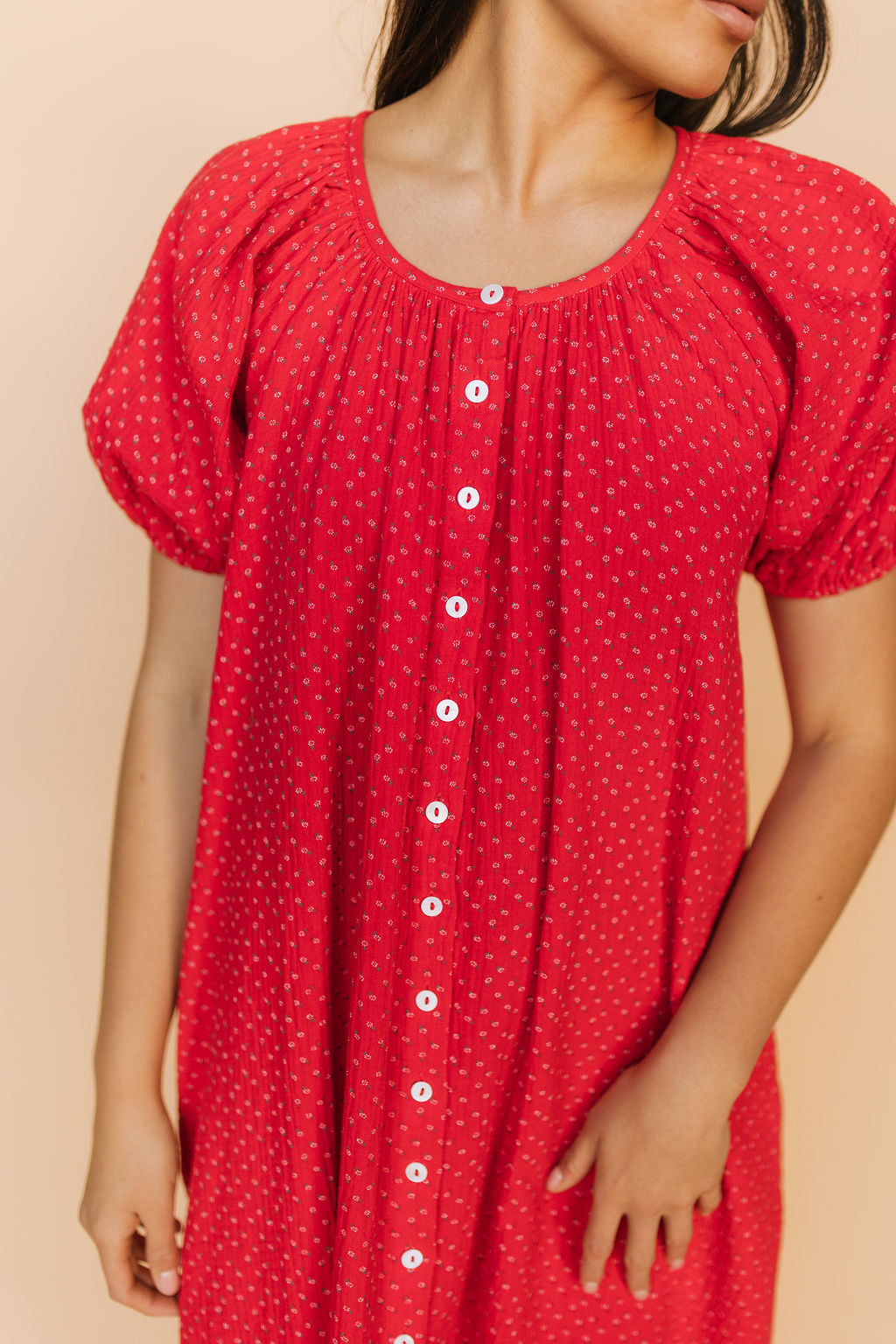 Main details: Gauze fabric, non sheer. Button down front-nursing friendly. Bump friendly